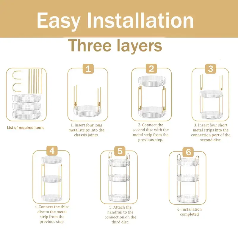 Mothers Day Gift 3Tier Kitchen Spice Rack Countertop Organizer Multifunctional Rotating Tray Desktop Storage for Cosmetics Makeup Seasoning Jars 360 Rotating Space Saving Multi Scene Use for Home Kitchen Vanity Bathroom