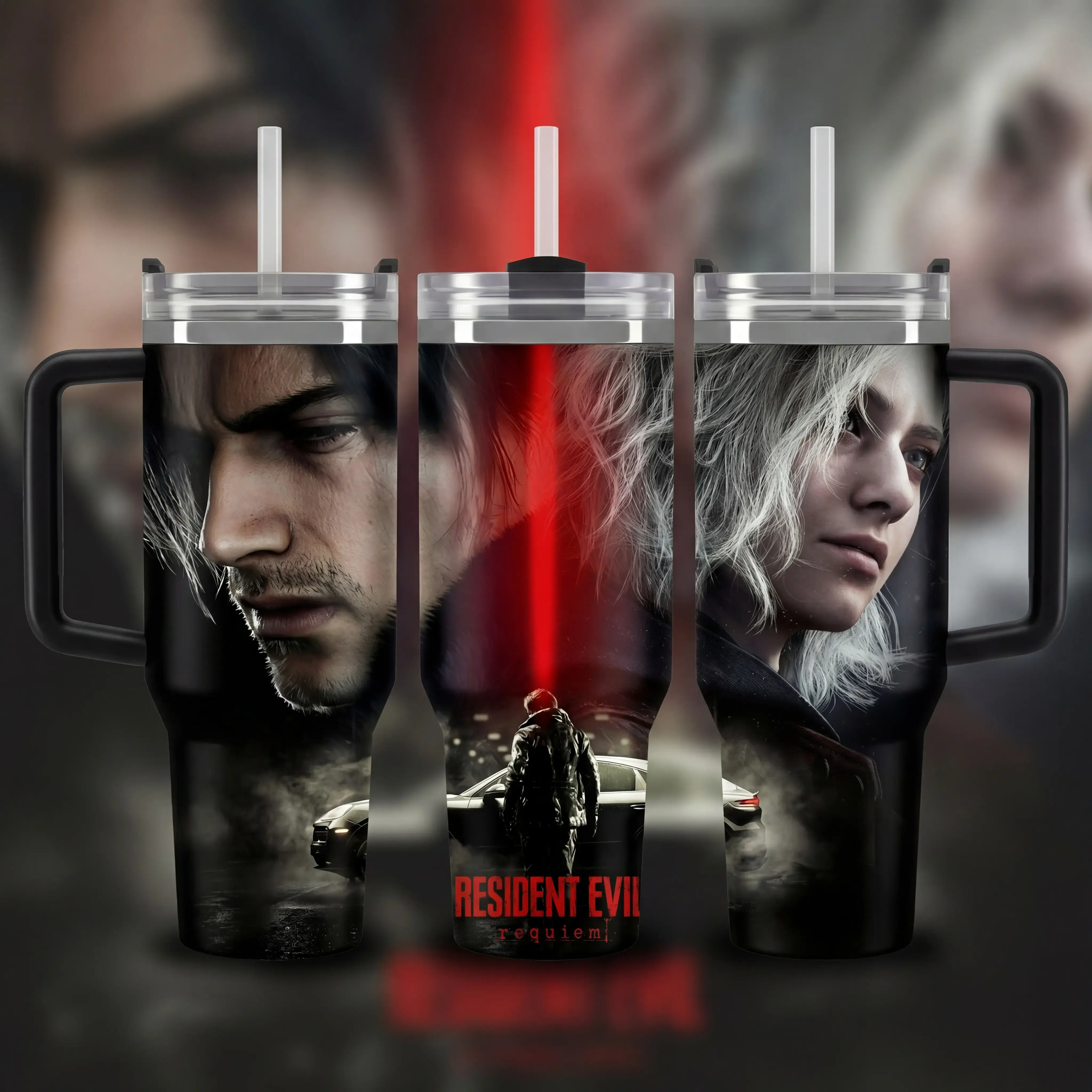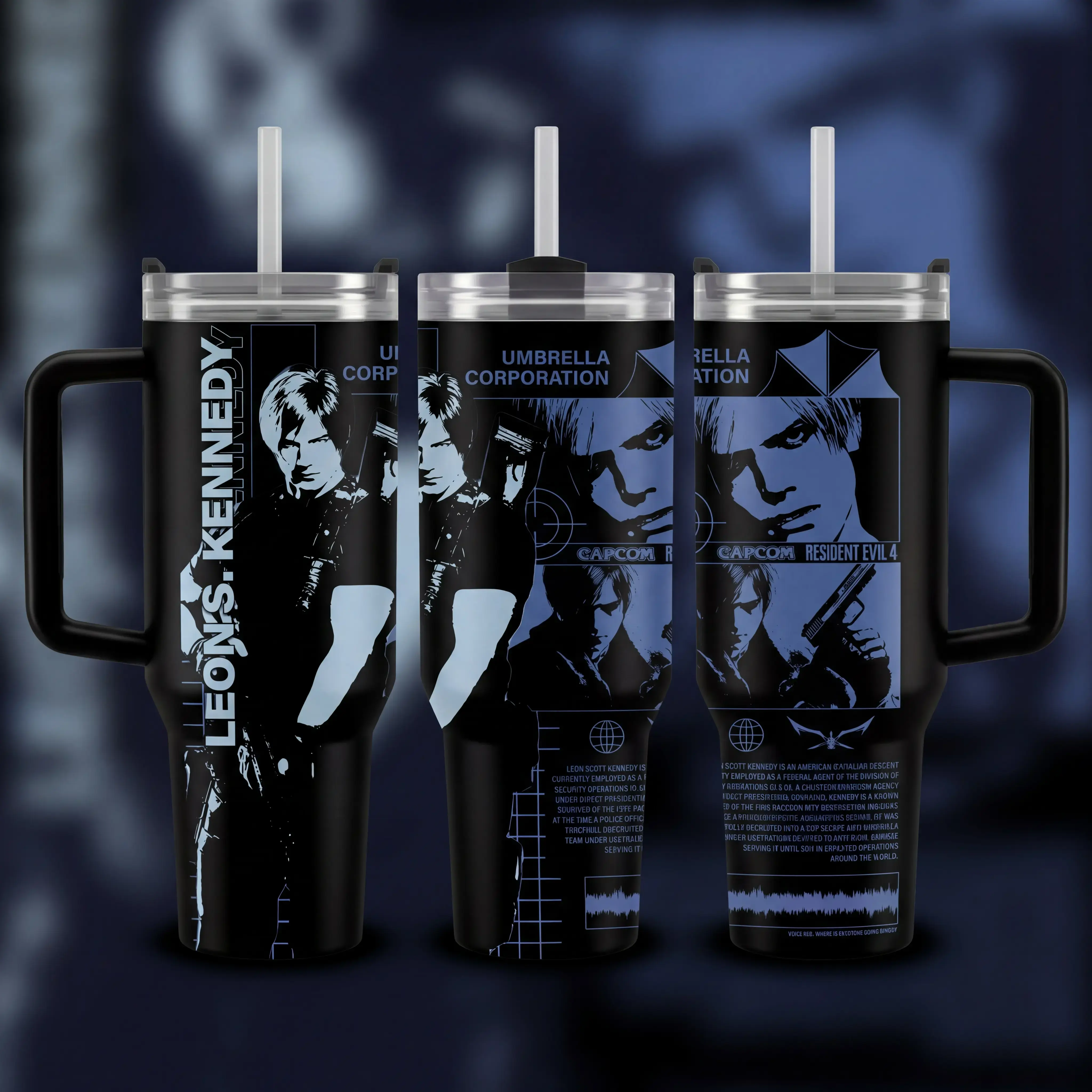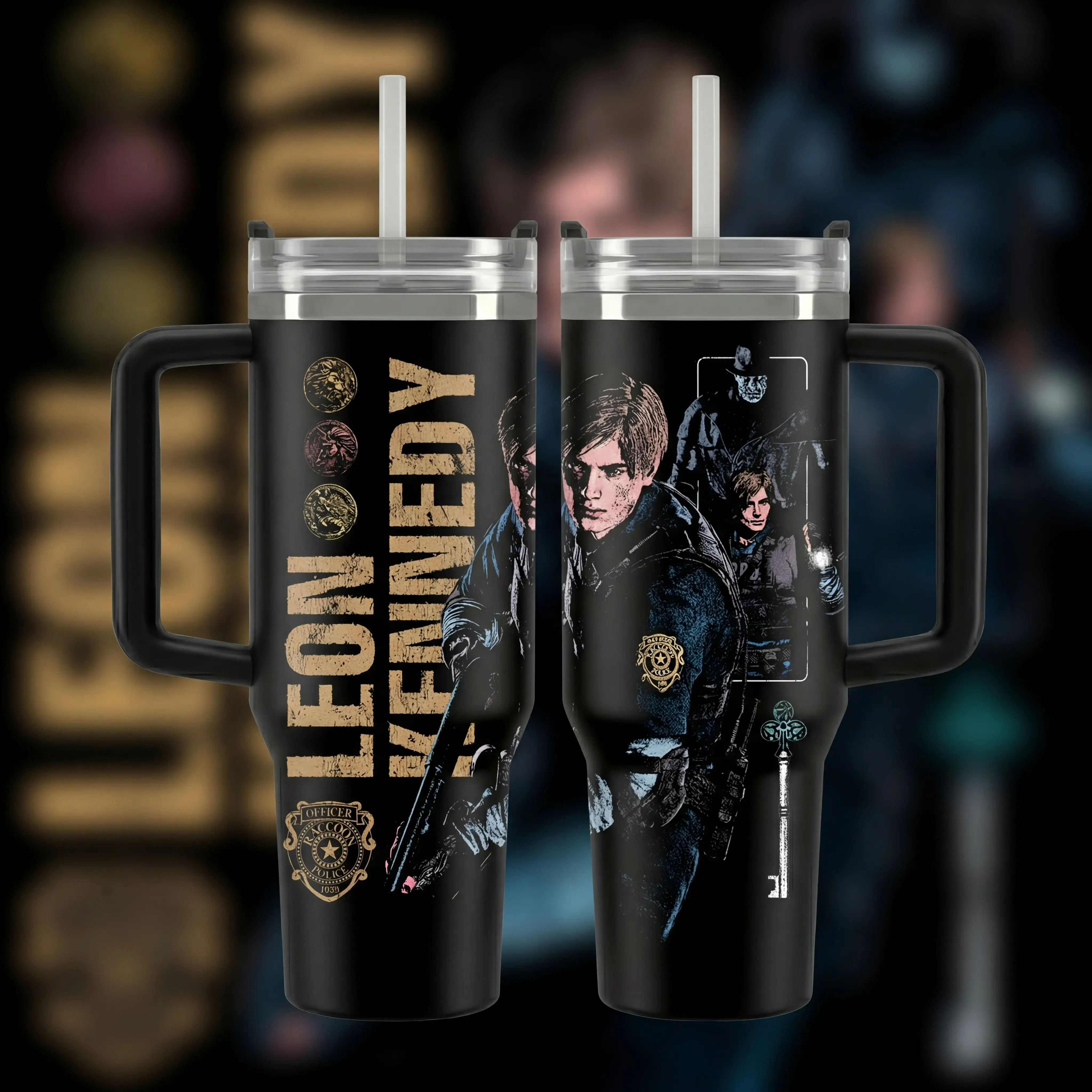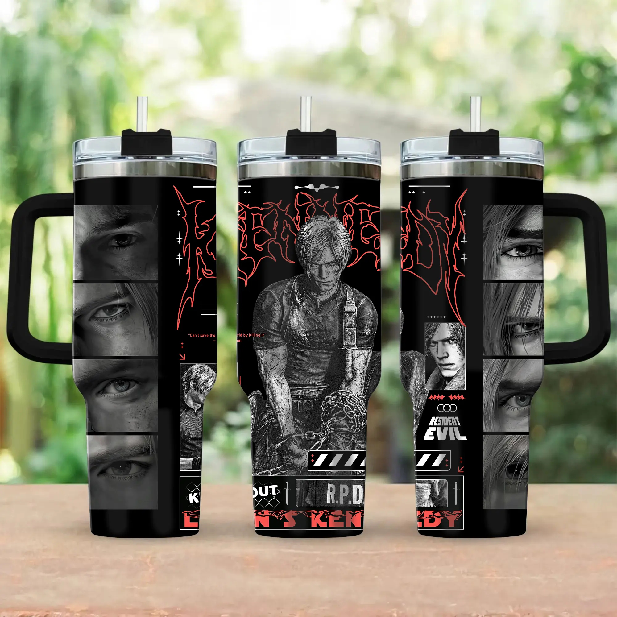 Hot Leon.S Kennedy 40oz Tumbler, Leon S.Kennedy Resident E Inspired Steel Tumbler, Gift For Gaming Lovers Tumbler with Handle, Black Water Bottle