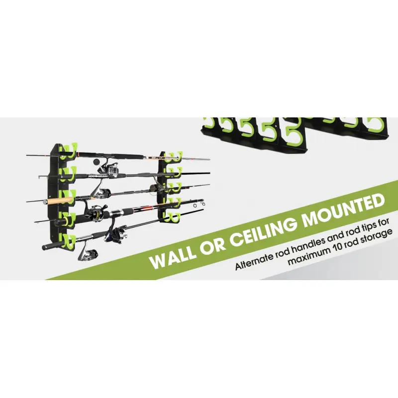 [Store 10 Rods or Combos]The Fishing Rod Holders for Garage offer a solution for anyone looking to declutter and protect their valuable fishing gear.Our fishing rod rack can store 10 rods or combos, maximizing the use of your space.It can be installed on the wall or ceiling giving you the flexibility to customize your storage space as your needs.