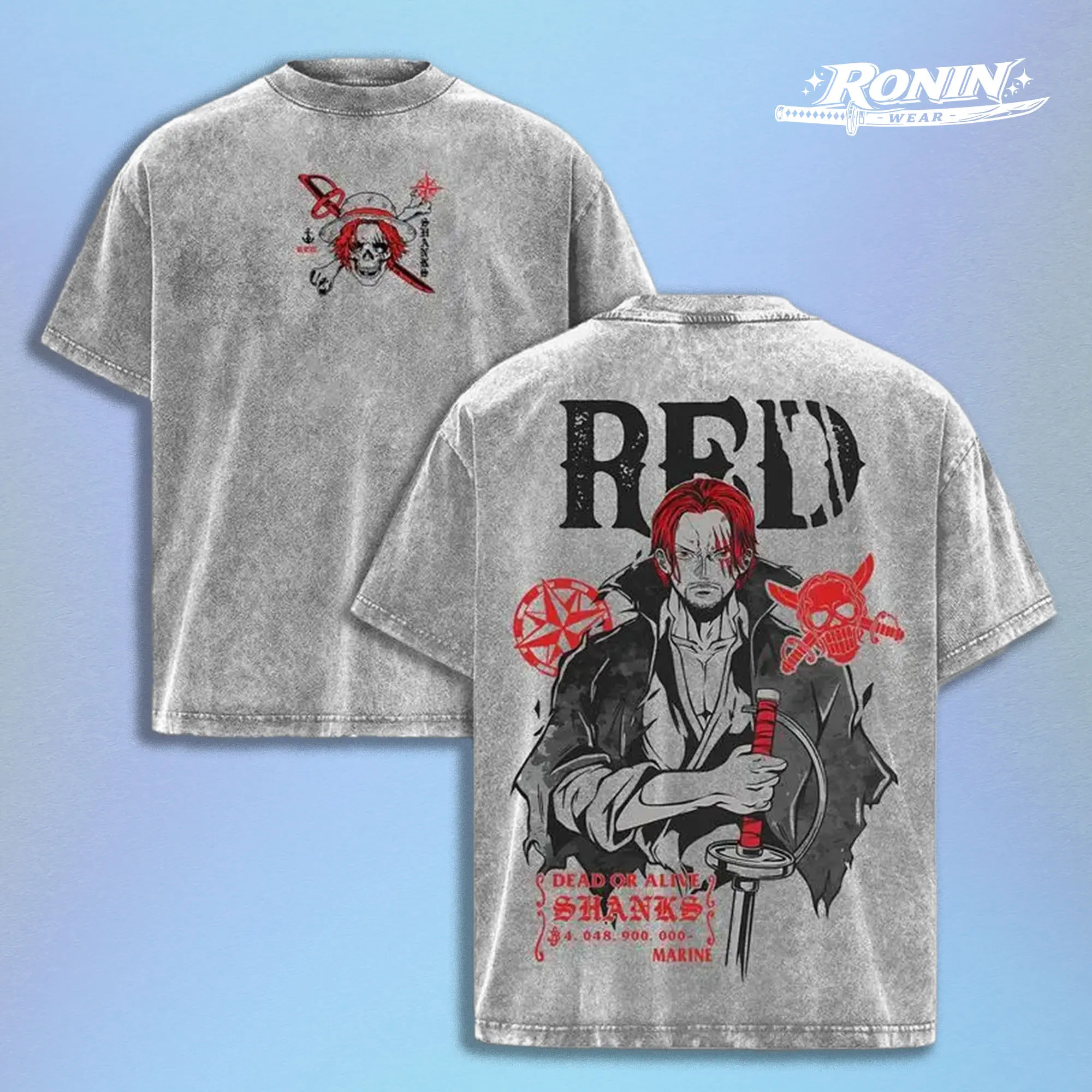 Retro Limited Shanks Red One Piece Vintage Unisex Oversized Anime Graphic Tee Y2K Double Printed Acid Washed Cotton T-Shirt Streetwear, Outfits Men Top Manga Game Movie Gift Lover Merch