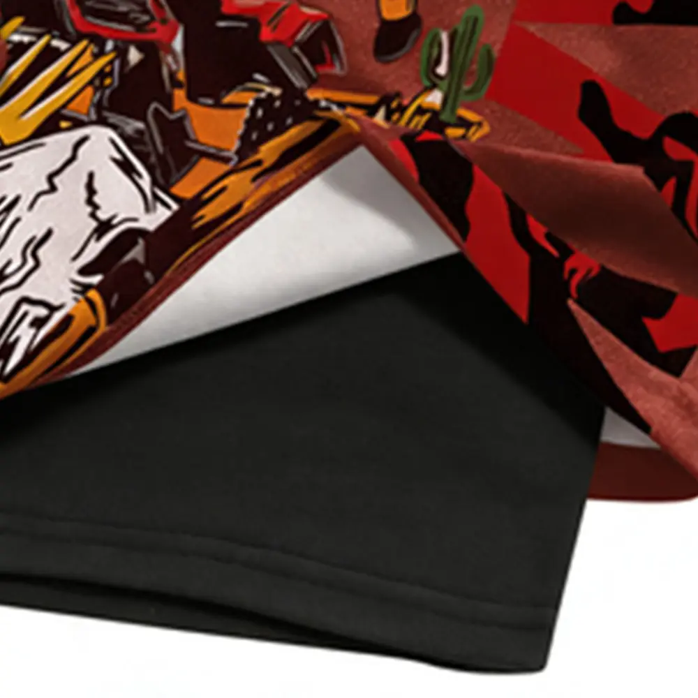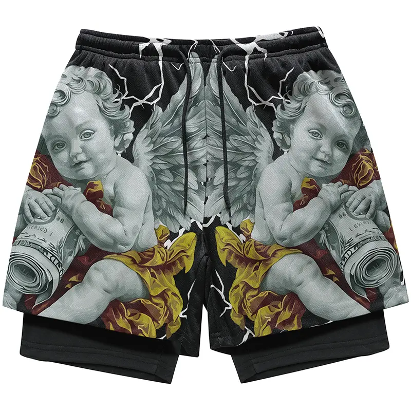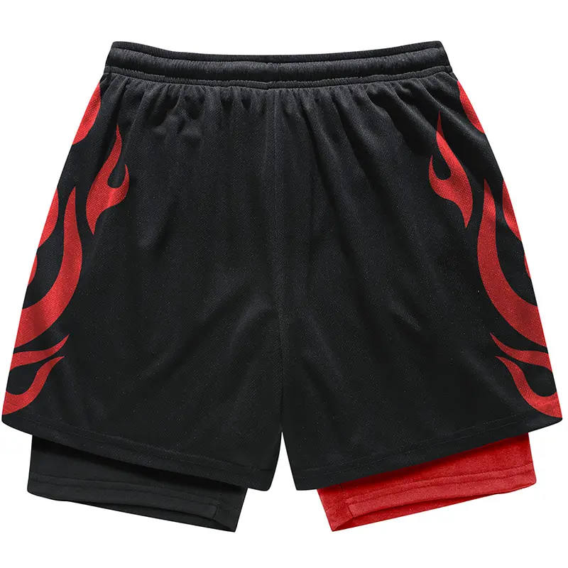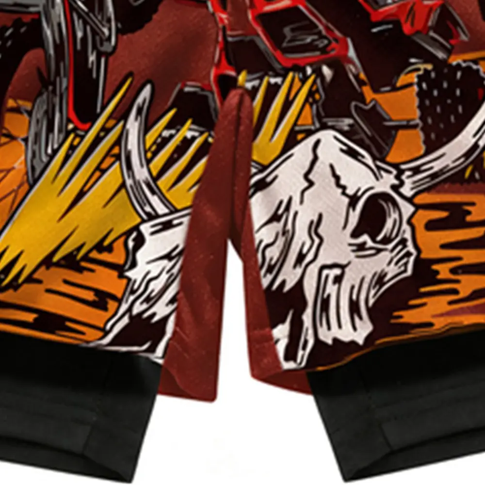 Double-layer quick-dry faux two-piece athletic shorts | Trendy cool print + anti-exposure design — sporty casual style!