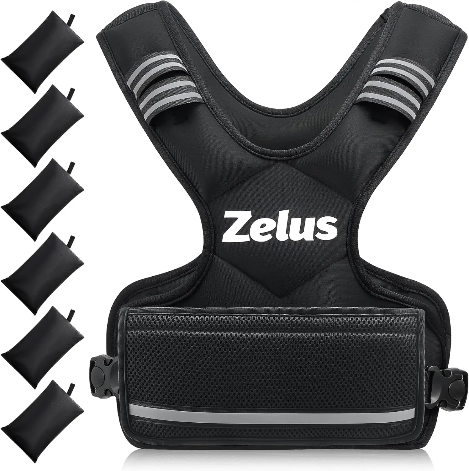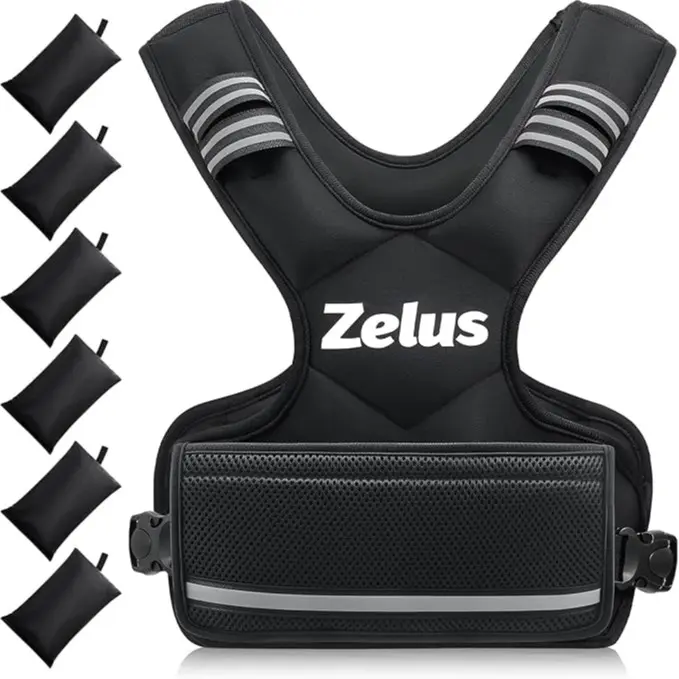 Enhance your workout with the ZELUS adjustable weighted vest designed for men and women. This vest starts at 4 pounds and can increase up to 10 pounds using six 1-pound iron sand weight bags, providing customizable resistance to improve core strength and endurance.