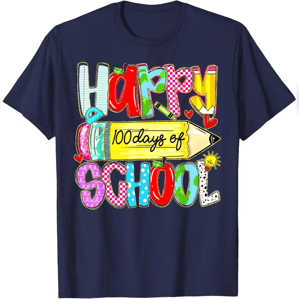 100th Day Of School Pencil Teachers Child Happy 100 Days T-Shirt Comfy Everyday T-Shirt
