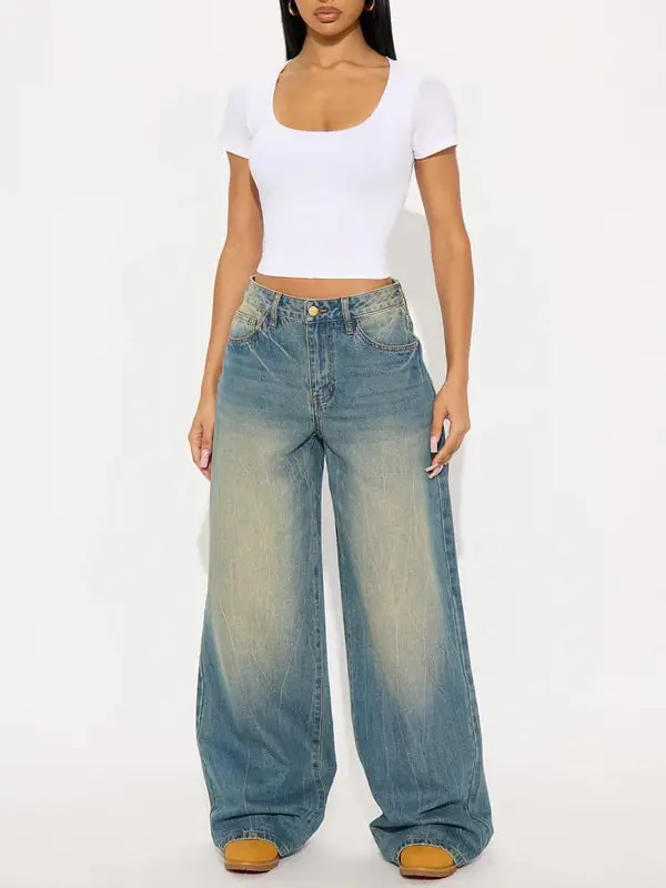 Western Low Rise Wide Leg Jeans