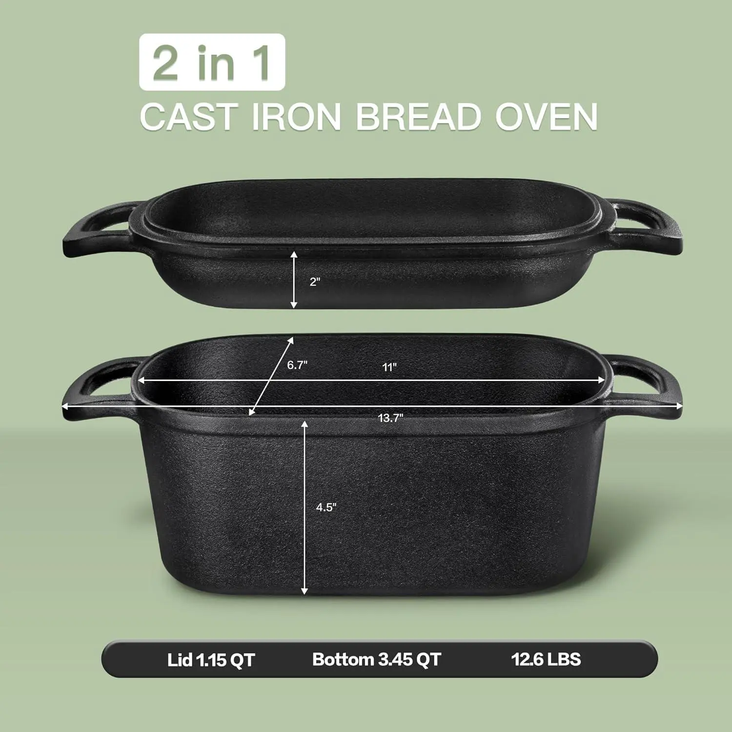 ·High-Quality Cast Iron Construction: Crafted from durable, high-quality cast iron, this cast iron loaf pan with lid guarantees excellent heat distribution and moisture retention, perfect for sourdough dutch oven baking. Its thick, heavy-duty walls lock in heat, creating an ideal baking environment for your sourdough and artisan loaves
