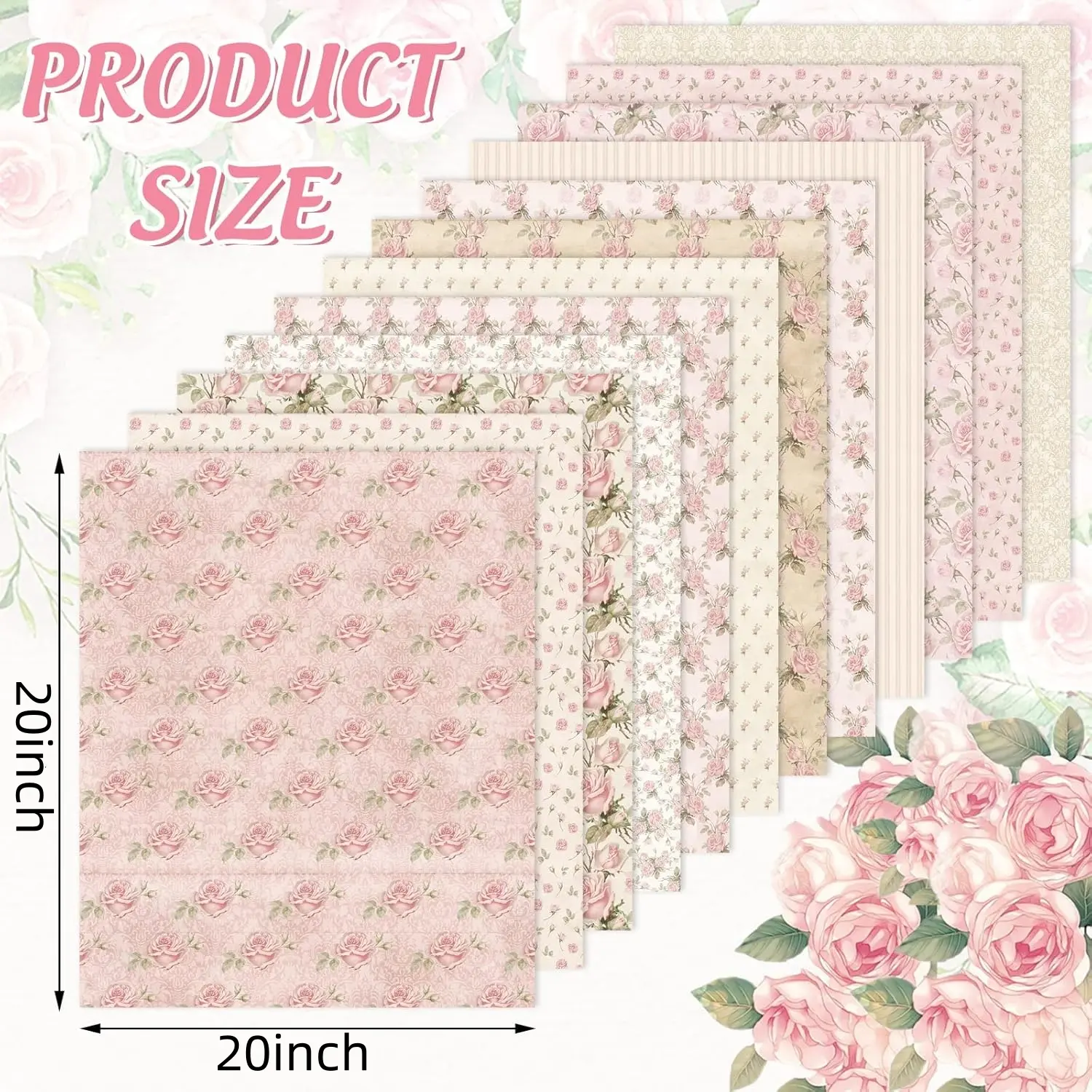 Floral Patterns - These cotton fabric bundles take spring theme design, printed with various retro style rose flower patterns, and mainly in pink color, well match the spring season atmosphere