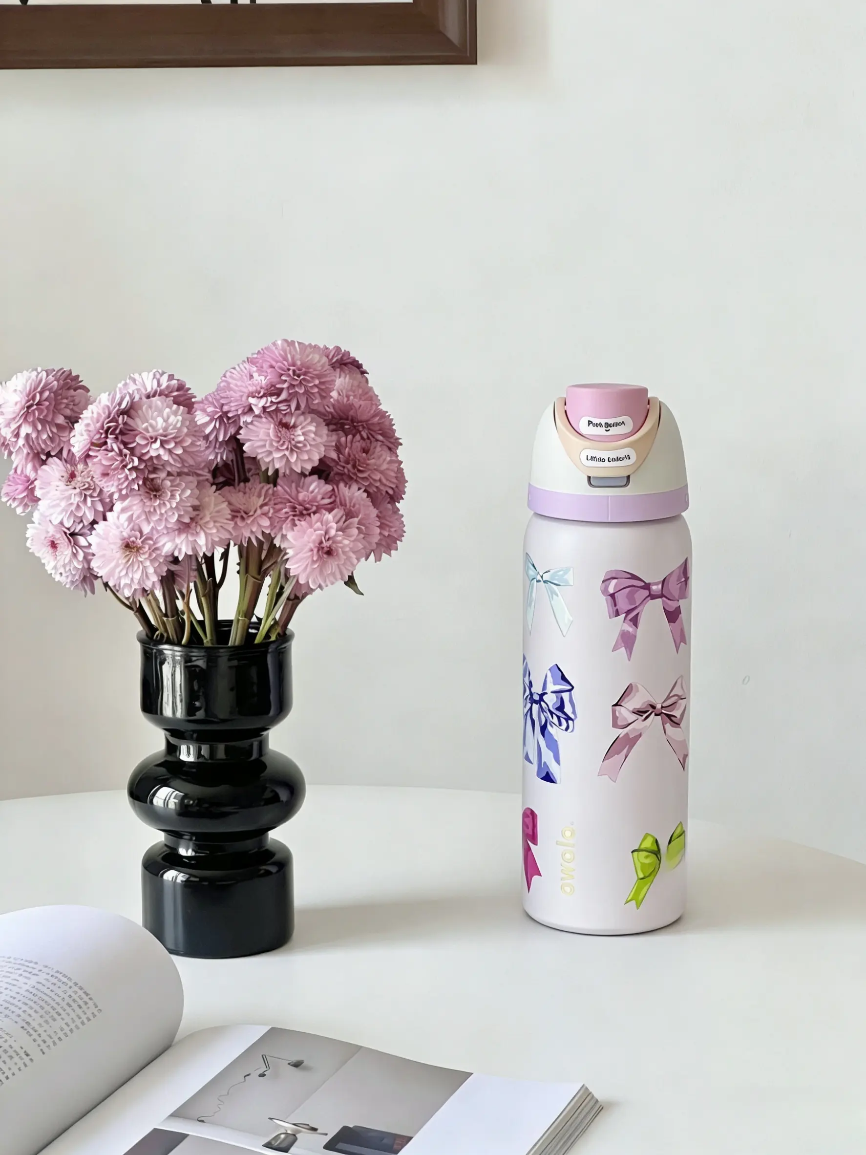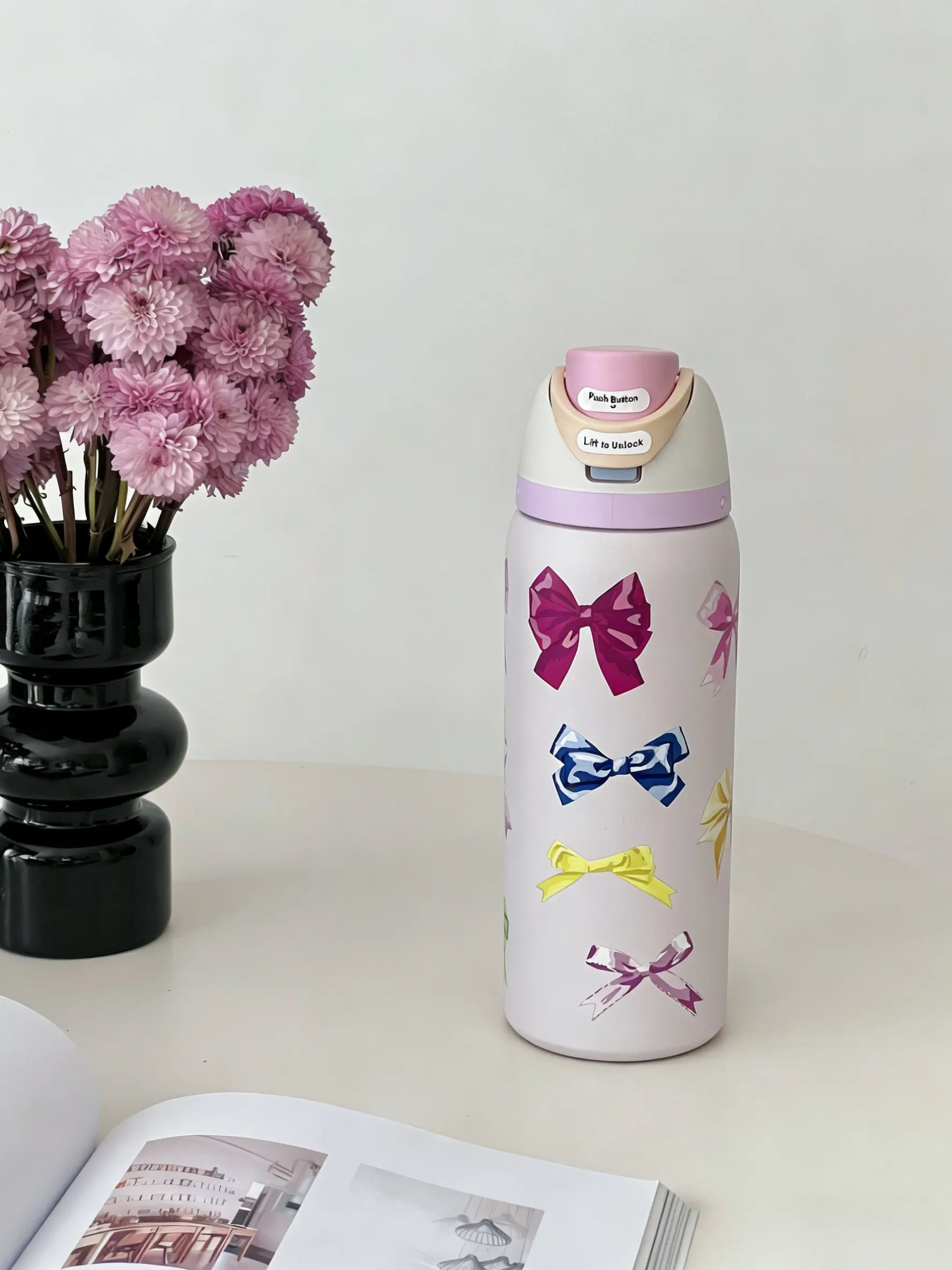 Enjoy your drinks in style with this elegant water bottle. Whether for school or travel, it's a practical choice. The cute bow print adds a playful element to your drinkware. Stay hydrated in a chic, leak-proof bottle. 🌟