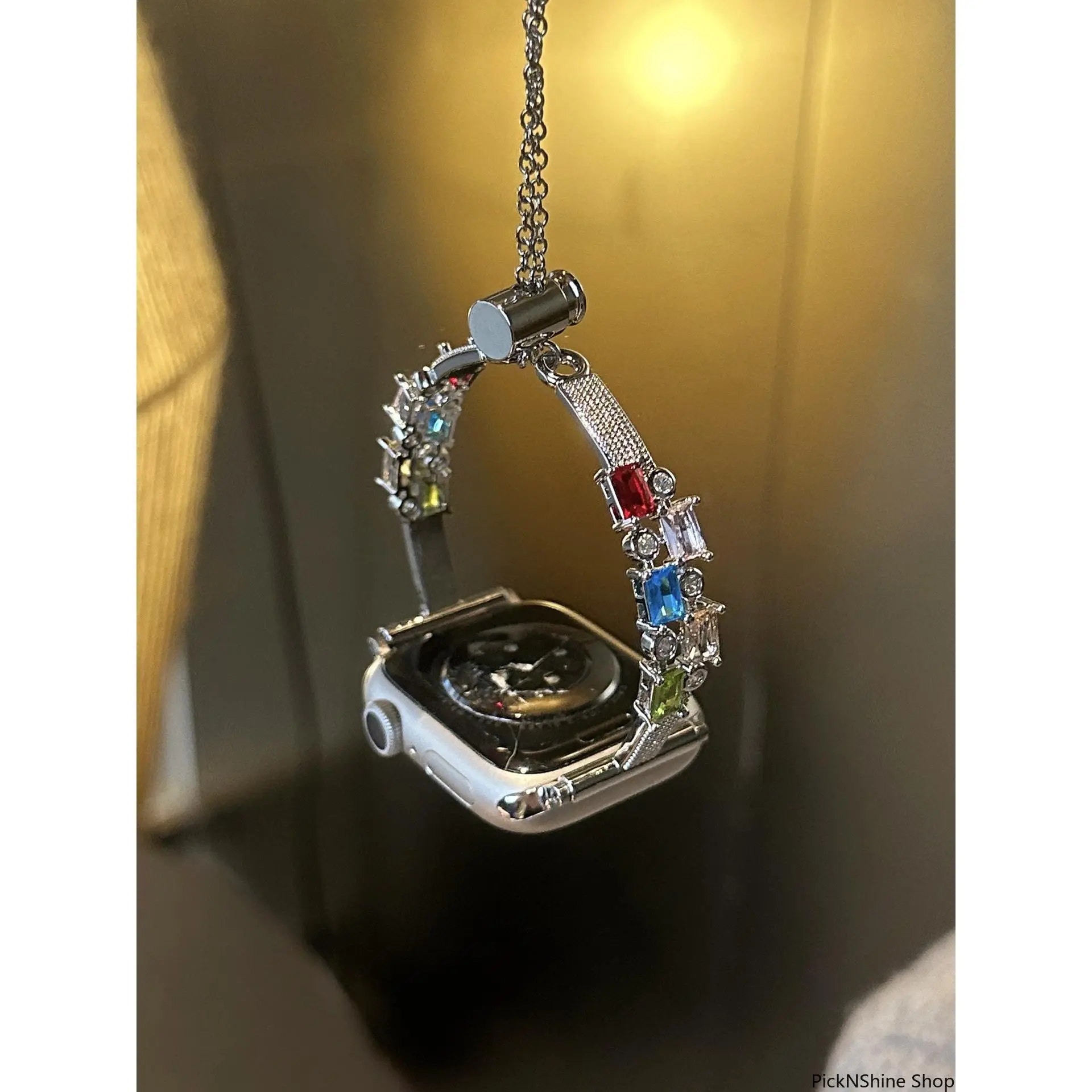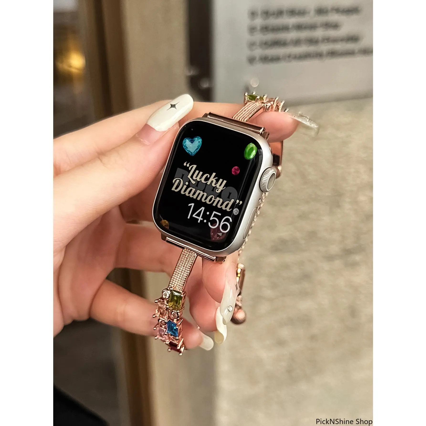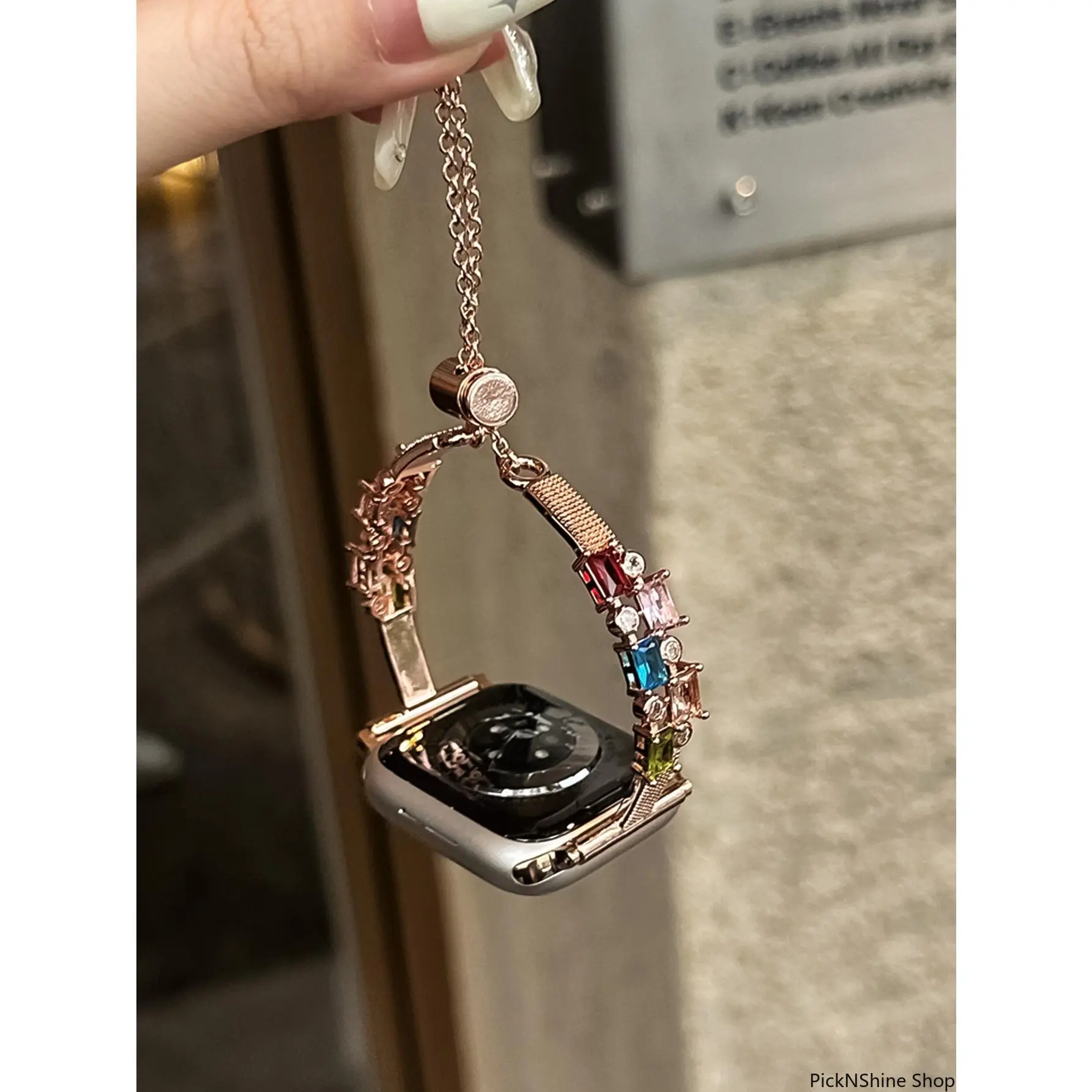 Candy Square Rhinestone Bracelet Watch Band, Stylish Strap Compatible With Apple Watch Series 4 5 6 7 8 9, Shiny Elegant Design For Women's Daily Wear