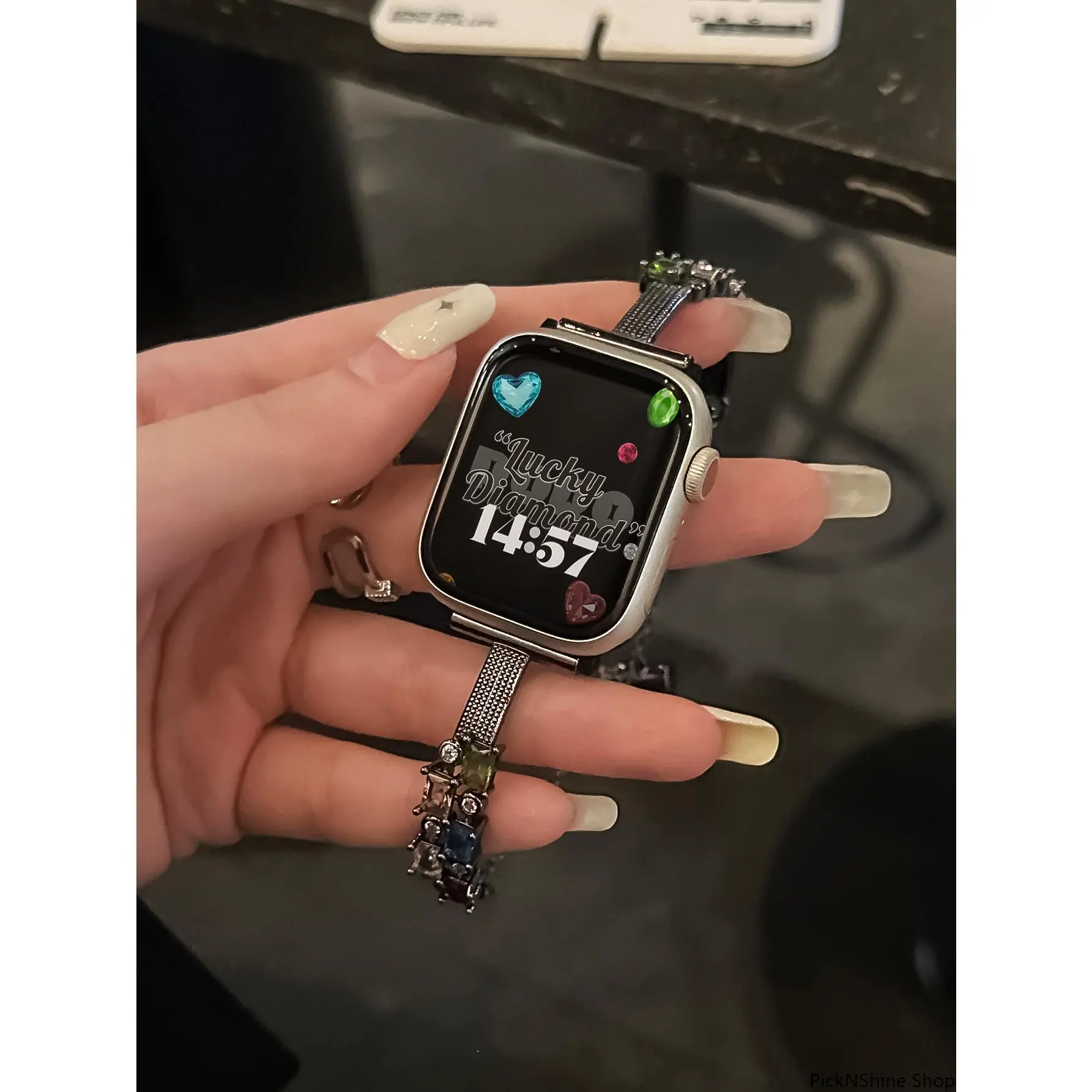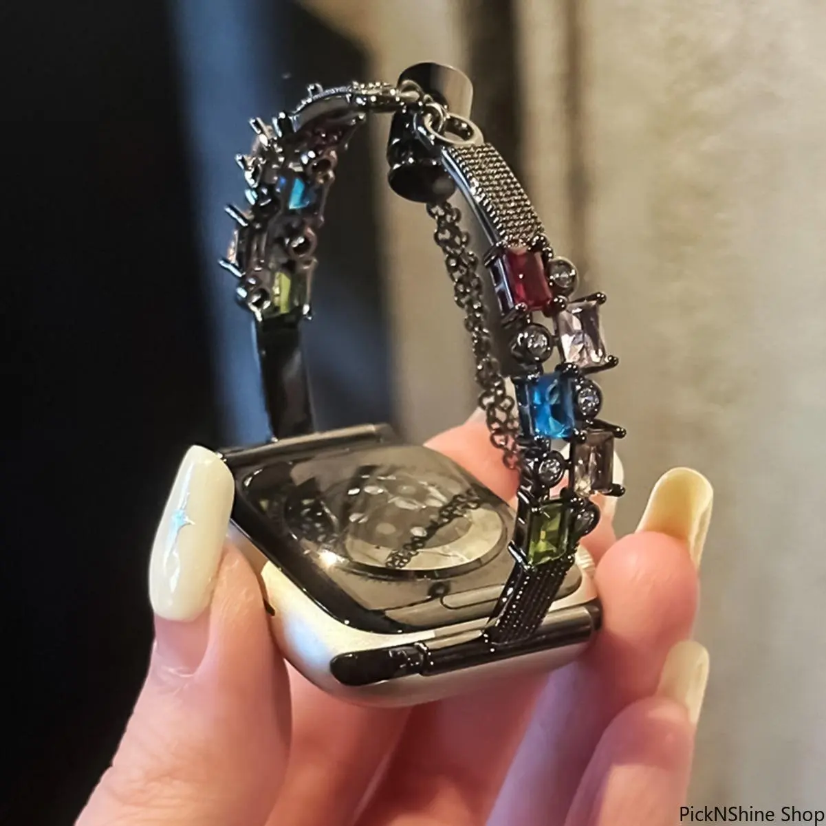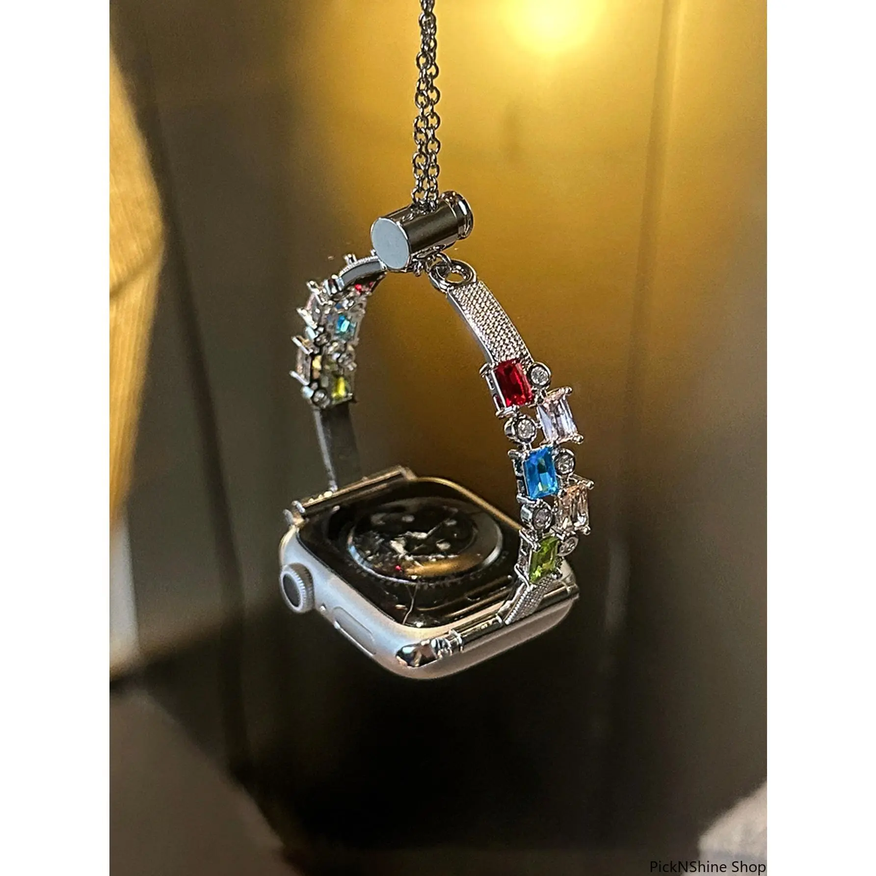 Candy Square Rhinestone Bracelet Watch Band, Stylish Strap Compatible With Apple Watch Series 4 5 6 7 8 9, Shiny Elegant Design For Women's Daily Wear