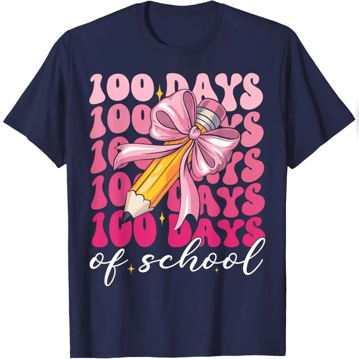 100 Days Of School Girls Coquette Pink Bow Teacher Student T-Shirt Comfy Everyday T-Shirt
