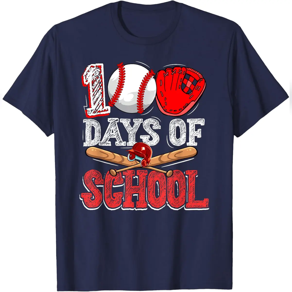 100th Day Of School Baseball 100 Days Of School T-Shirt Comfy Everyday T-Shirt