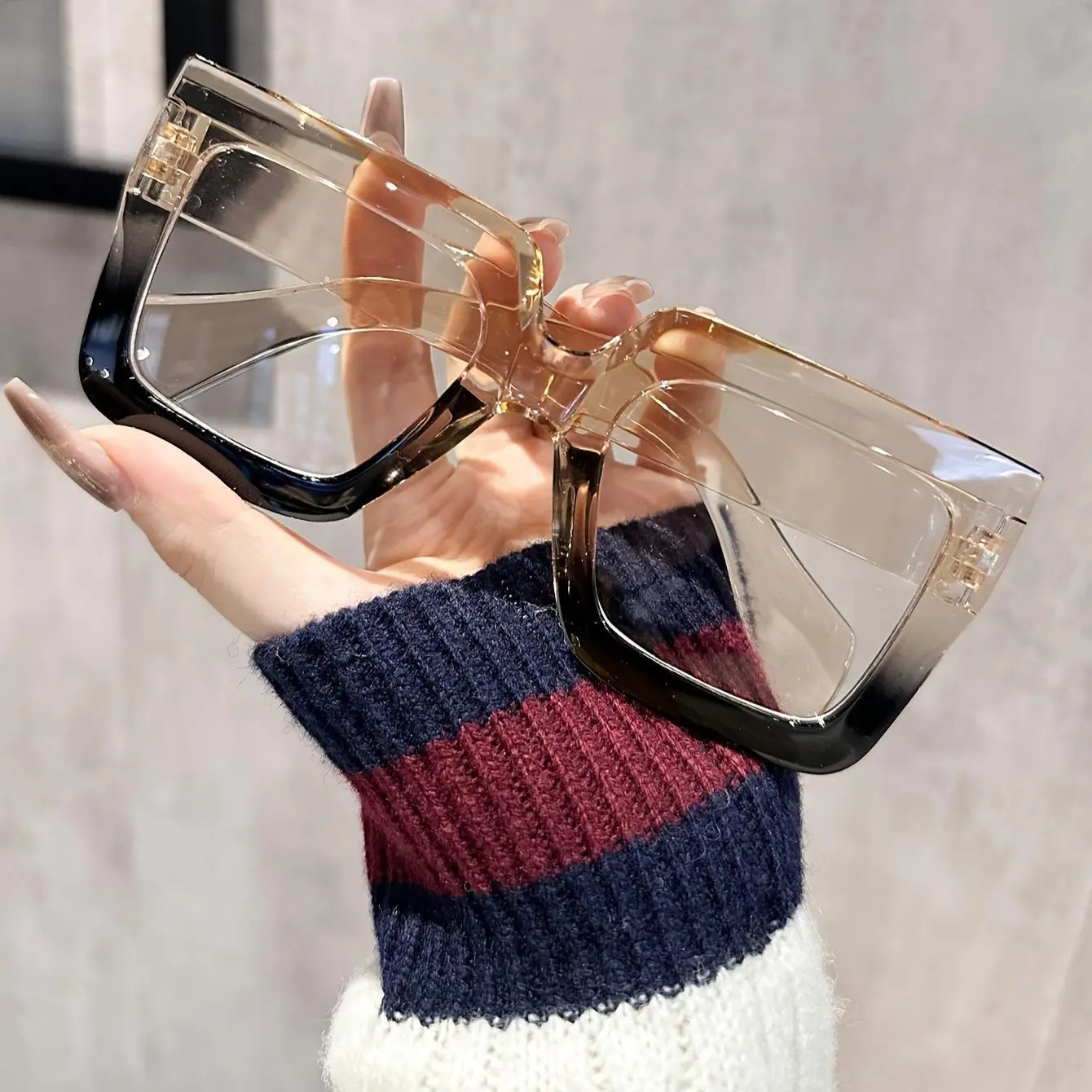 1 Pair Fairmarry Chic Square Clear Lens Glasses - Vintage Style, PC Frame Perfect for Daily Wear (0degrees without glasses case)