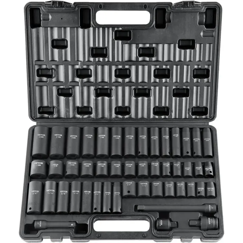 1/2" Drive Impact Socket Set, 48 Piece Socket Set SAE 3/8" to 1-1/4" and Metric 10-24mm, 6 Point Cr-V Alloy Steel for Auto Repair, Rugged Construction, Easy-to-Read Size Markings, Storage Case Heavy Duty HARD EDGEHARD EDGE