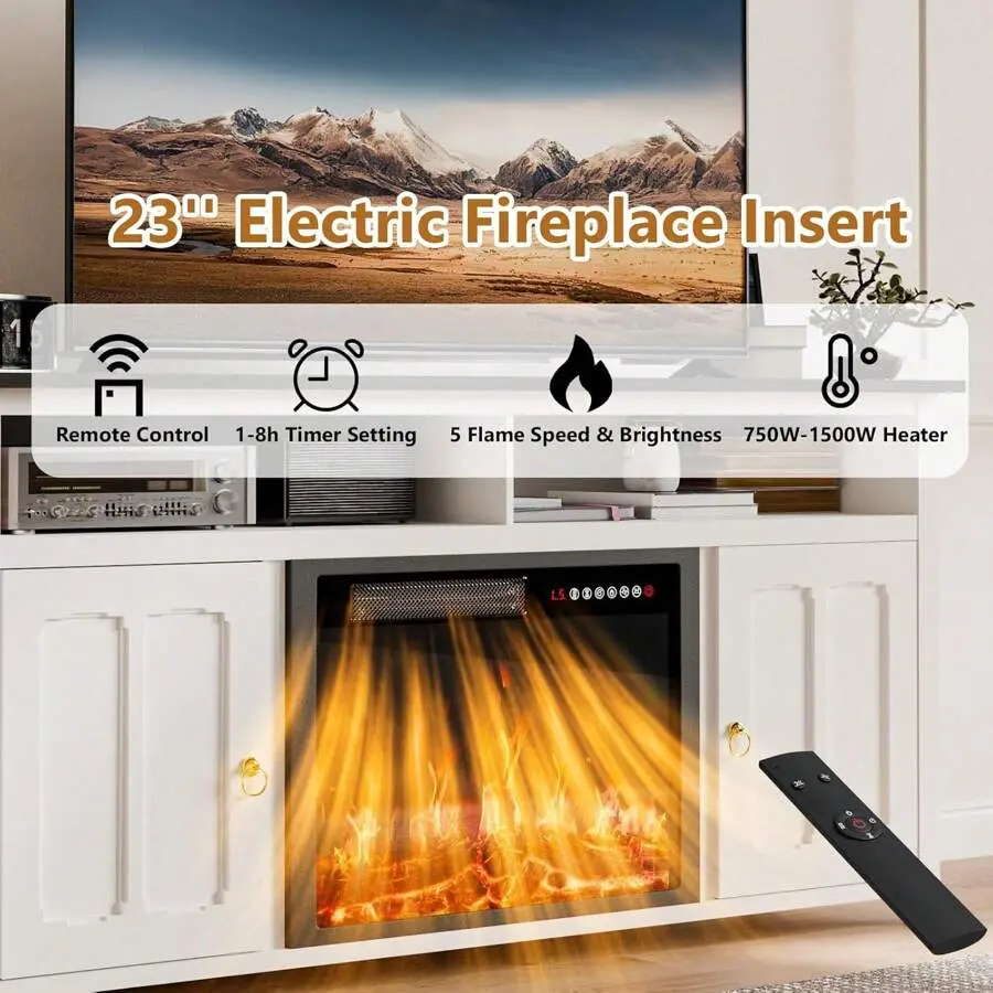 23 Inch Electric Fireplace:This built-in fireplace has the feel of a traditional fireplace burning coals without any noise and heats up to 400 square feet, creating a cozy and relaxing space for you.You can control the fireplace with the included remote control or operator panel, easily adjusting the flame brightness and temperature, as well as the timer time that can be set from 1-8h.Overheat protection ensures your safety