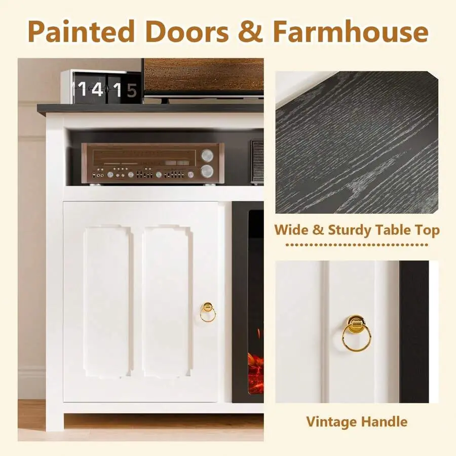 Morden Farmhouse Style:The farmhouse fireplace tv stand has a unique dimpled finish design and metal pulls, rich wood grain, color and texture that will give your living room a modern and unique style that will be a highlight in your home.