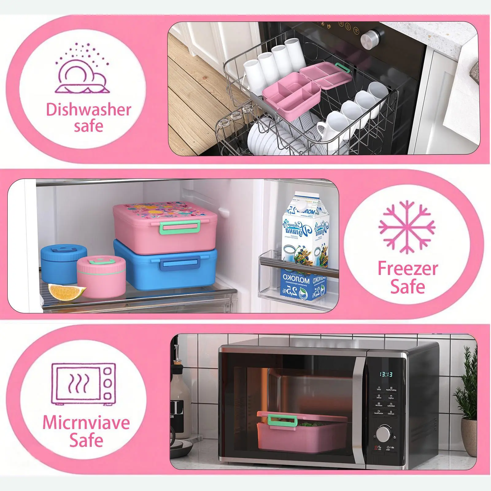• Leak-Proof Lunch Containers: These containers prevent spills, making them easy to transport. Ideal for kids, ensuring a hassle-free lunchtime. Keep your child's lunch secure during school or travel.