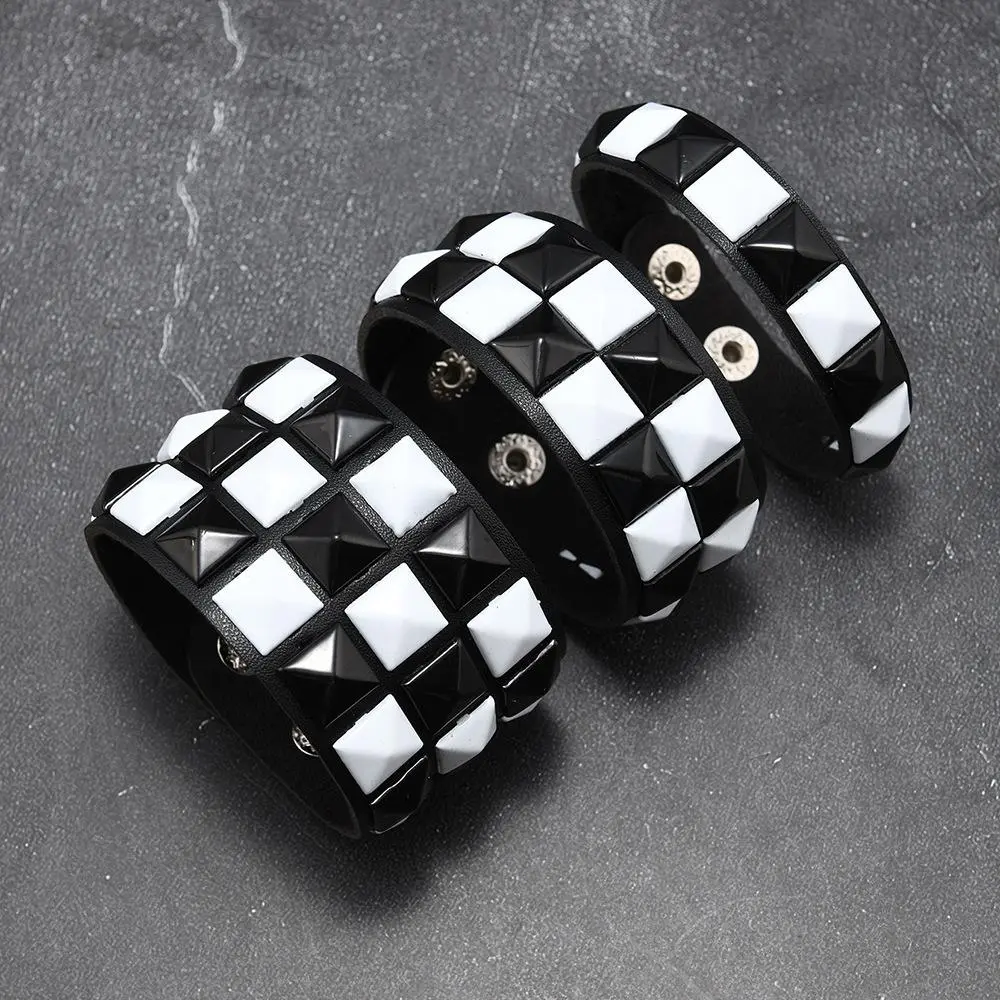 3Pcs/Set Fashion Contrasting Rivets Leather Wrist Friendship Big Wide Bracelet For Male Female Buckle Vintage Punk Jewelry