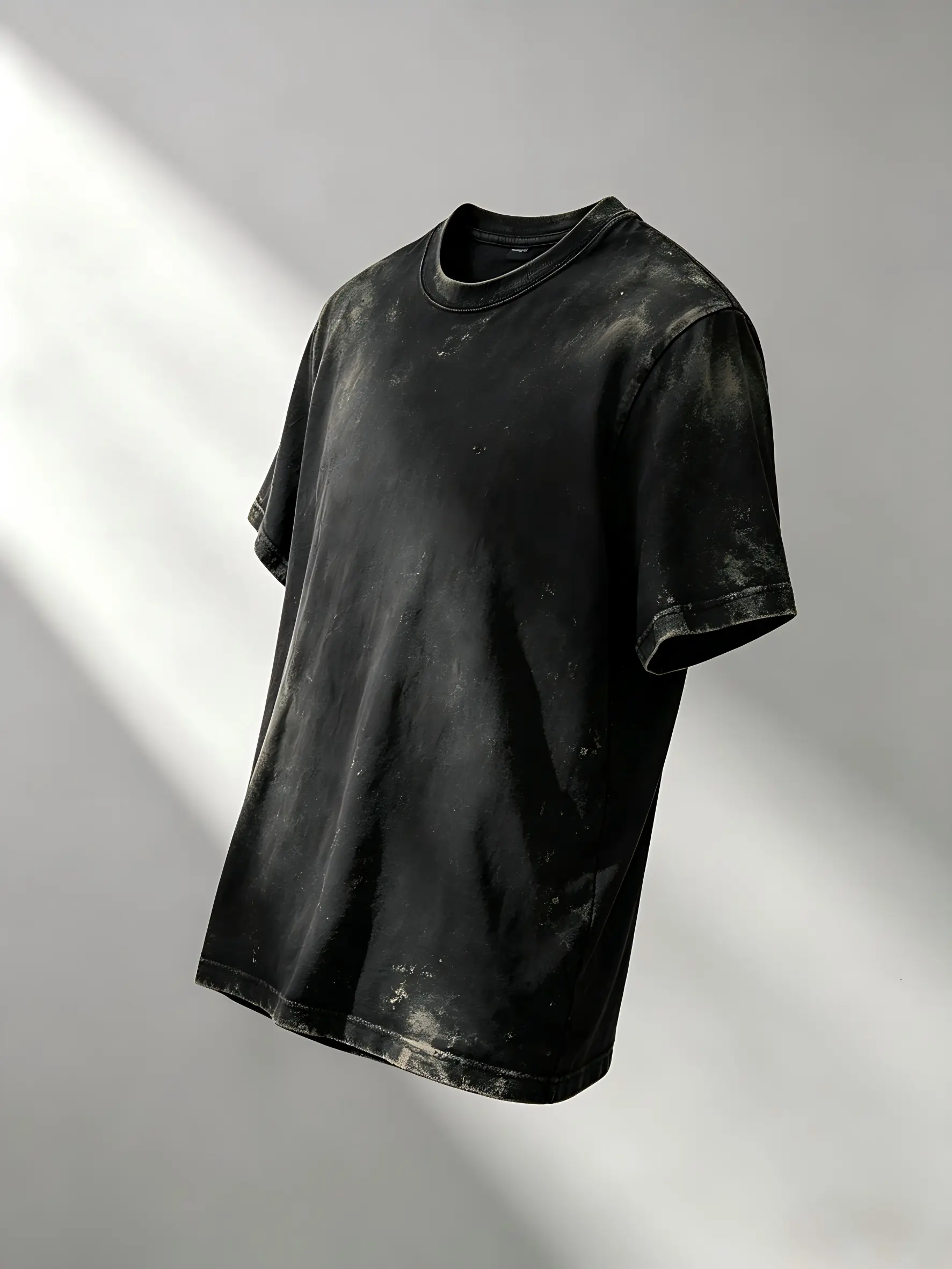 Edgy men’s short-sleeve T-shirt made from soft 100% cotton knit fabric, featuring a bold “Restless” Gothic font print on a vintage acid-wash base, brimming with dark ’90s street style.