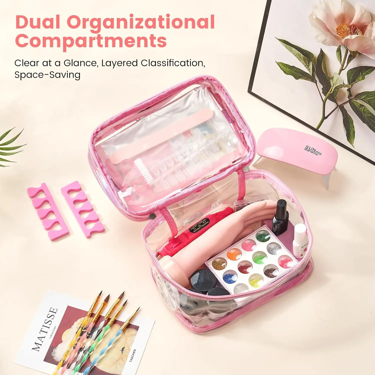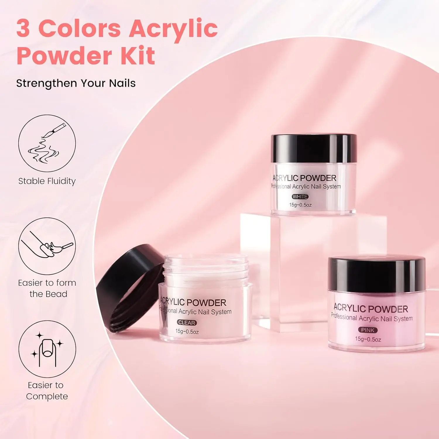 Premium Glitter Powder & Cosmetic Bag: The nail kit includes 24 colors of high-quality glitter powder and nail sequins, with fine particles and rich colors, suitable for various nail art styles. It also features a double-layer transparent makeup bag, which is convenient for storing and organizing nail tools and accessories, making your nail art creation more convenient. The makeup case organizer is made of laser powder material, which is stylish, beautiful, and easy to carryProfessional Nail Practice Hand: The high-simulation rubber fake hand simulates the real touch of human skin and is suitable for practicing various nail art techniques. The practice hand for acrylic nails is durable and easy to clean, making it an ideal choice for beginners and nail art enthusiasts. Additionally, the nail kit acrylic set includes 100pcs french nail tips and 100pcs full nail tips, which are convenient for practice and creationComplete Acrylic Nail Kit for Beginners: This acrylic nail set provides a one-stop nail art solution for beginners, including 70ml acrylic liquid, 15g high-quality acrylic powder (3 colors), 15ml X-Strength primer, and 8ml top coat, meeting the needs of basic nail care to creative designs. The nail acrylic kit also includes acrylic nail brushes, nail forms, cuticle pushers, and other tools, suitable for home nail art enthusiastsConvenient Storage & Organization: The double-layer transparent cosmetic bag is uniquely designed to categorize and store glitter powder, nail sequins, and other nail tools, keeping your workspace tidy. The makeup bag is made of laser powder material, which is stylish, beautiful, and easy to carry. Additionally, it includes a glass dappen dish, nail glue, nail file, nail buffer block, and other auxiliary tools to meet various nail art needsIdeal for Gifting & DIY Enthusiasts: Suitable for beginners and home nail art enthusiasts, and also makes a great gift for wives, girlfriends, mothers, etc. The nail kit contains a rich variety of nail tools and accessories, suitable for holidays, parties, and everyday use. Whether you are a beginner or a nail art enthusiast, you can easily achieve professional nail art effects with this acrylic nail kit