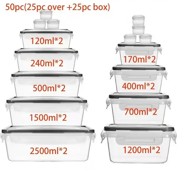 Keep your kitchen organized and your food fresh with this Premium Food Storage Container Set, available in 24, 48, or 50 pieces to suit your needs. Designed for convenience and durability, these containers are perfect for everyday meal prep and storage.