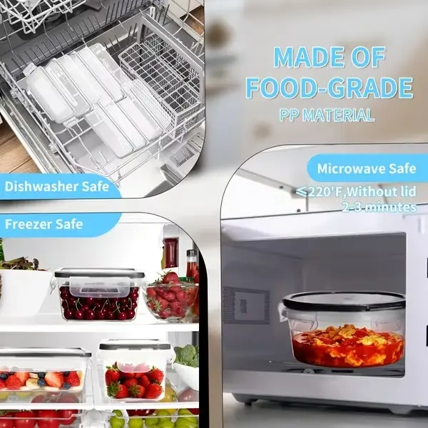 Made from high-quality, BPA-free materials, they are safe for food use and built to last. The leak-proof, easy-lock lids create an airtight seal to prevent spills and keep food fresh longer. With a stackable design, they help maximize space in your kitchen cabinets, fridge, or pantry.