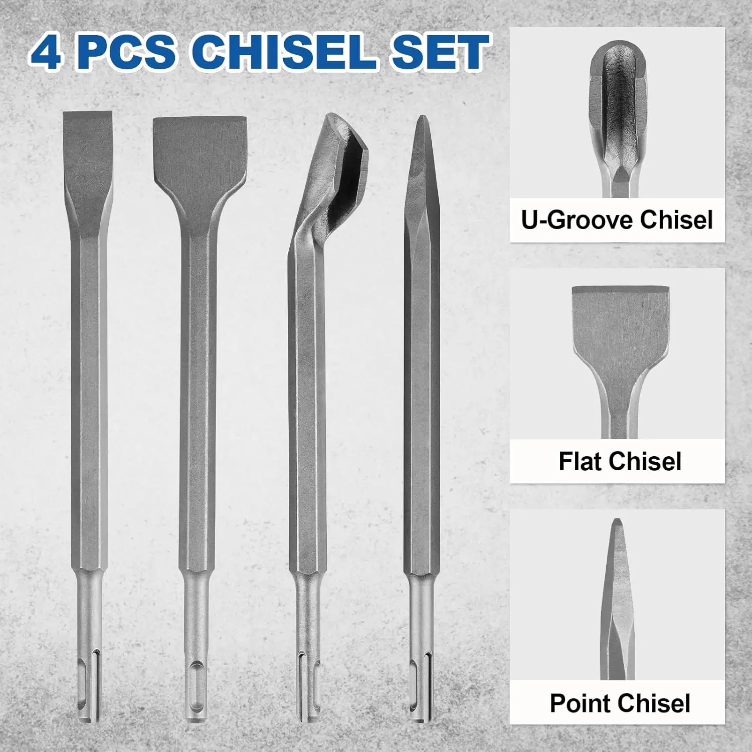 UNIVERSAL CONNECTION DESIGN: The SDS PLUS shank fits rotary hammer drills on the market and meets of your needs.SDS chisels with electric hammer drills can be for punching, , and chiseling grooves in concrete, brick, and walls