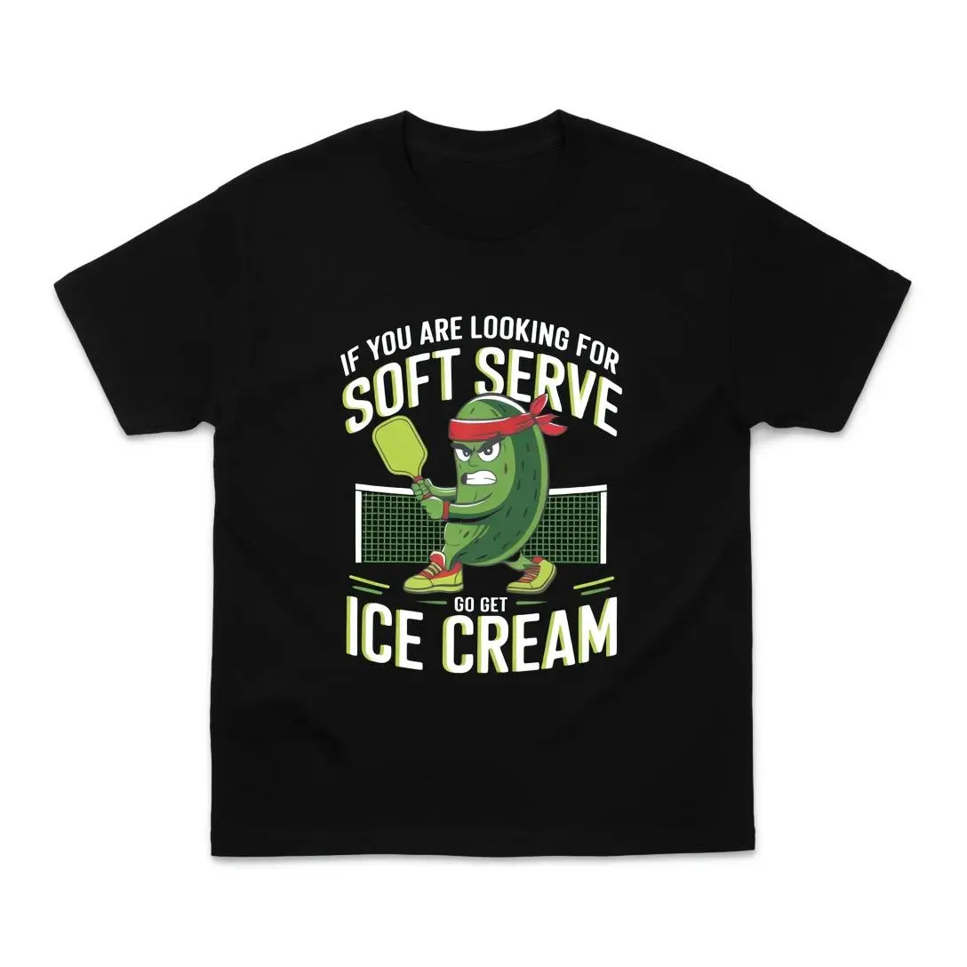 Soft Serve Pickleball Joke T-Shirt Funny Pickleball Ice Cream Graphic Tee Cute Pickle With Paddle Shirt Fun Sports Fan Gift Pickleball Humor Apparel
