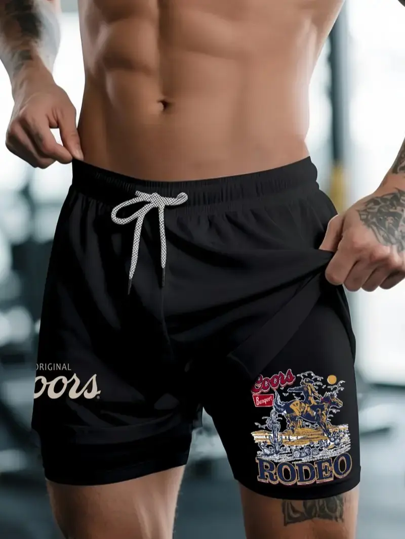 Men's Cross & Letter Print Shorts, 2-In-1 Drawstring Waist Design, Loose Fit with Pockets, Ideal for Summer, Anime Graphic Gift
