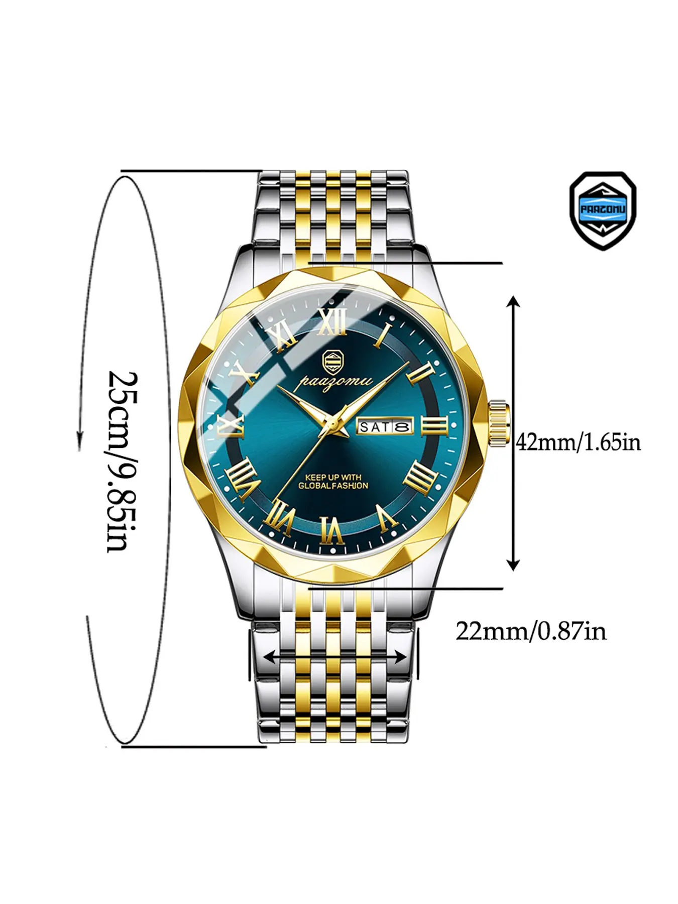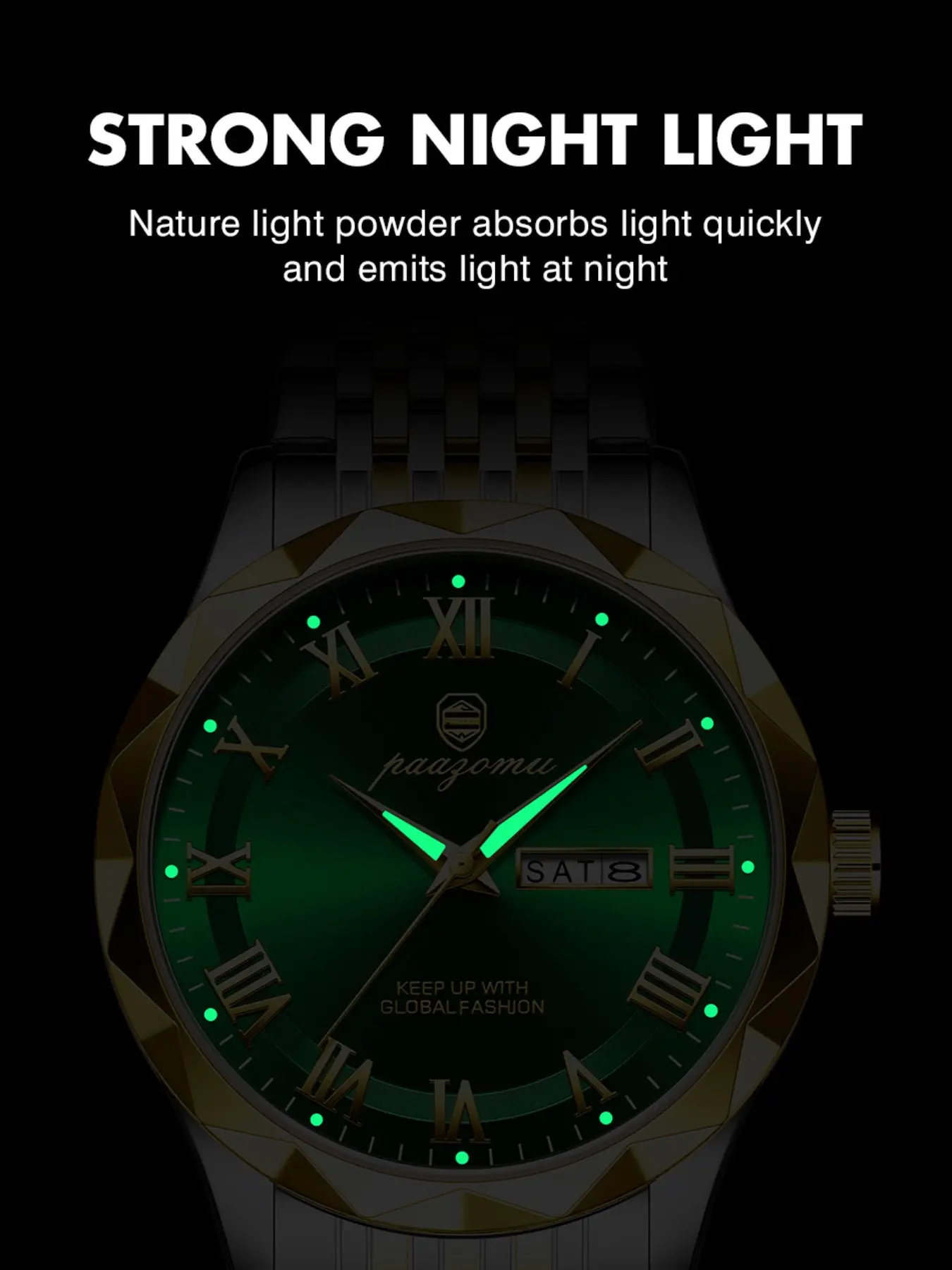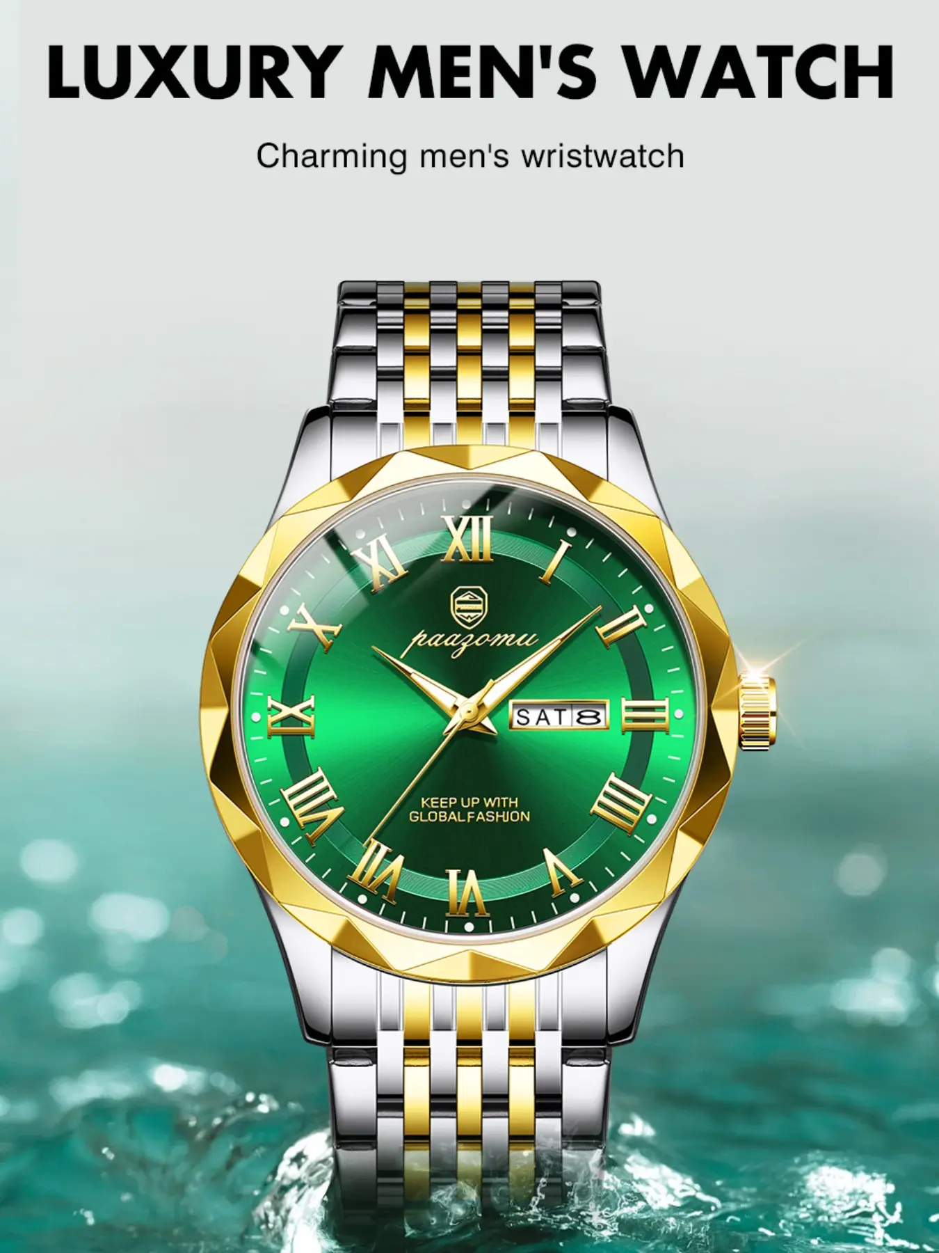 Paazomu Luxury Men's Watch, Waterproof Luminous Date, Stainless Steel Sport Fashion, Quartz Watch for Men, Stylish Male Clock
