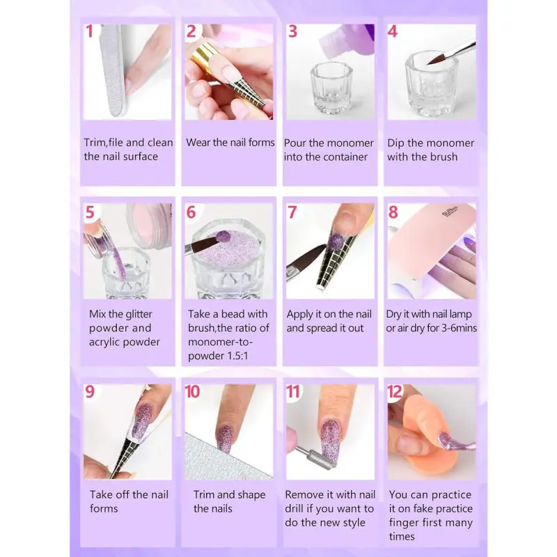 [81-IN-1 Everything You Need Is In This Nail Kit]: Complete nail set includes many nail art tools, like nail finger, acrylic powder, monomer acrylic liquid, UV/LED nail lamp, electric nail drill and bits, glitter, rhinestones, french nail tips, nail glue, nail clippers, nail brush & pen, nail files, nail bag etc. Save money and effort, you don't need to buy nail products separately! [42 Colors Nail Glitter Powder]:This nail kit acrylic set contains 42 different colors of glitter powder. Whether it is shiny, shiny, neon, autumn, nail, Christmas, as long as you can think of nail styling style, there is the glitter color you need, absolutely worth it. You can easily dress up your nails with the help of 42 color glitters! [20000RPM Nail Drill And 6W UV LED Nail Lamp]:Nail starter kit for beginners acrylic with everything comes with 6pcs replaceable nail drill bits and 3000-20000rpm professional nail drill offer flexible speed control, easier and safer to use! Portable foldable mini 6W UV/LED Nail lamp can fast cure all gels in 120s, easy to use and carry! [Upgraded Acrylic Nail Powder And Liquid Kit]:3 colors acrylic nail powder (white, clear, pink) is bubble-free polymers that will offer good clarity and provide a smooth self-leveling finish. Simple to use, it only takes 6~7 minute to completely dry, mix glitters and nail gem to get a new color and style. Acrylic liquid provides outstanding flexibility, adhesion, and absorption, when combined with dip powder it can keep color clarity and prevents discoloration. [Must Have Nail Art Tools Kit Set]:The black nail storage bag can contain all the nail tools of this set. It keeps nail tools for nail art so organized and easy to carry. Our acrylic nail set is the excellent gift for wife, mother or girlfriend. for any nail artist to make acrylic manicures at home or in salon.