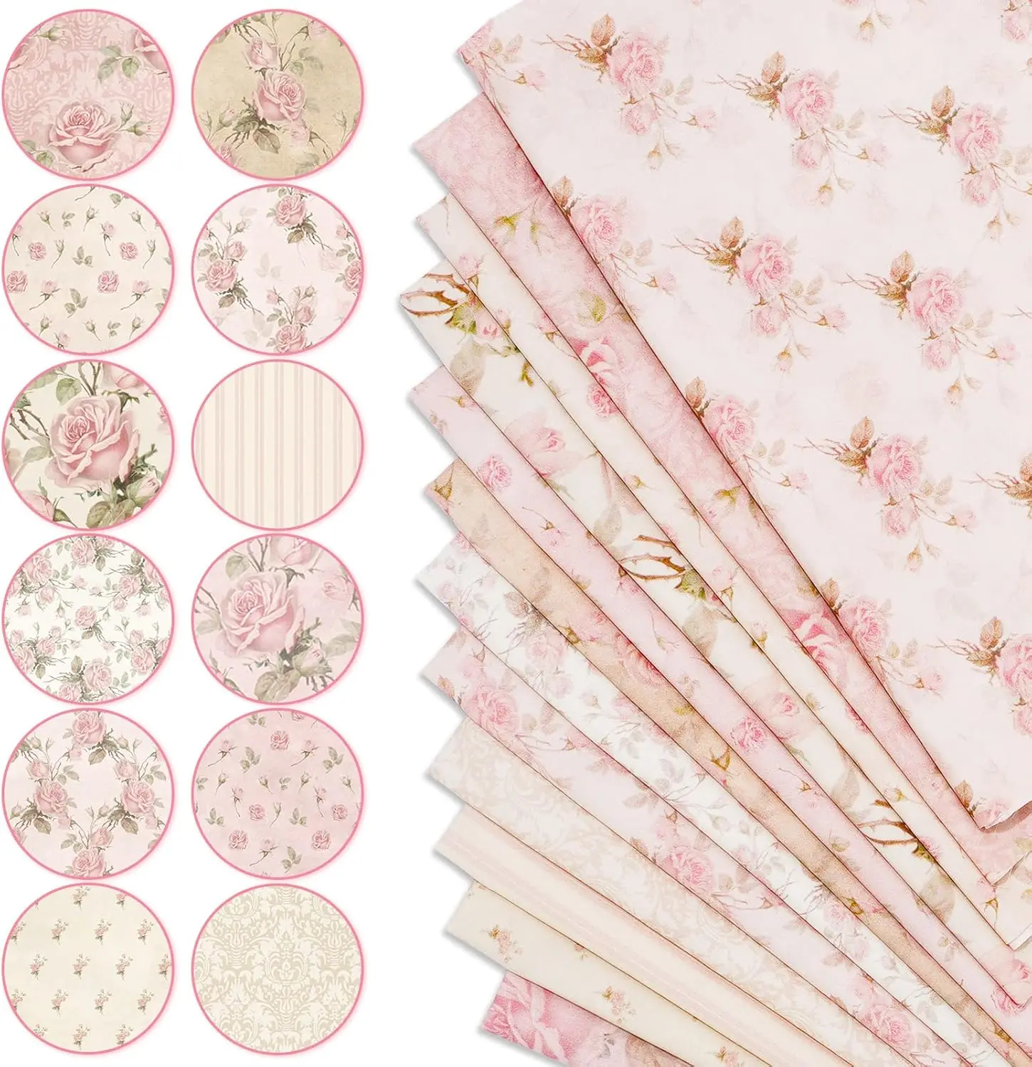Floral Patterns - These cotton fabric bundles take spring theme design, printed with various retro style rose flower patterns, and mainly in pink color, well match the spring season atmosphere