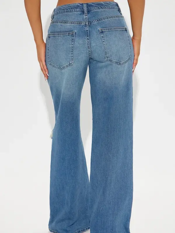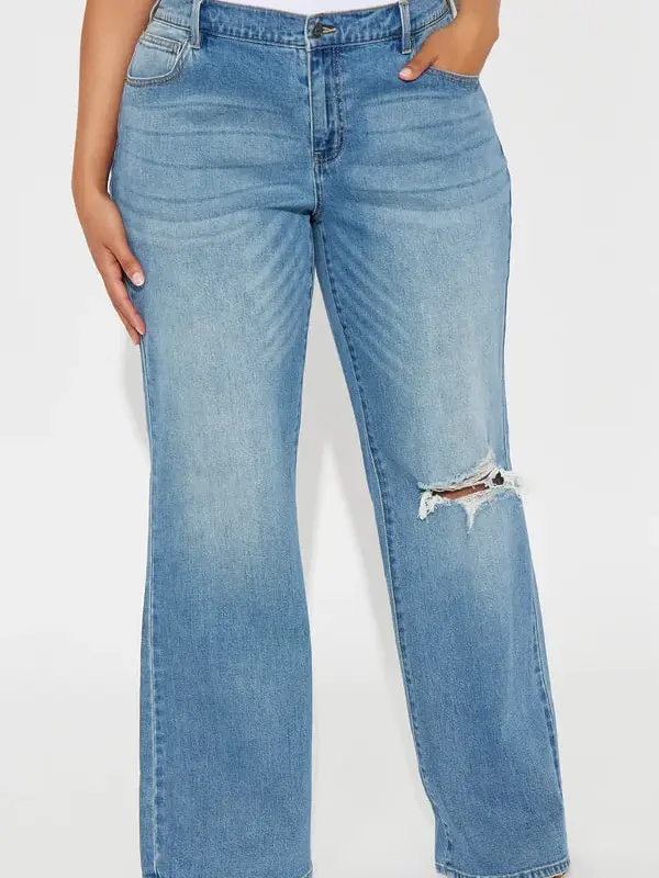 Tough Love Baggy Ripped Straight Leg Jean - Medium Wash