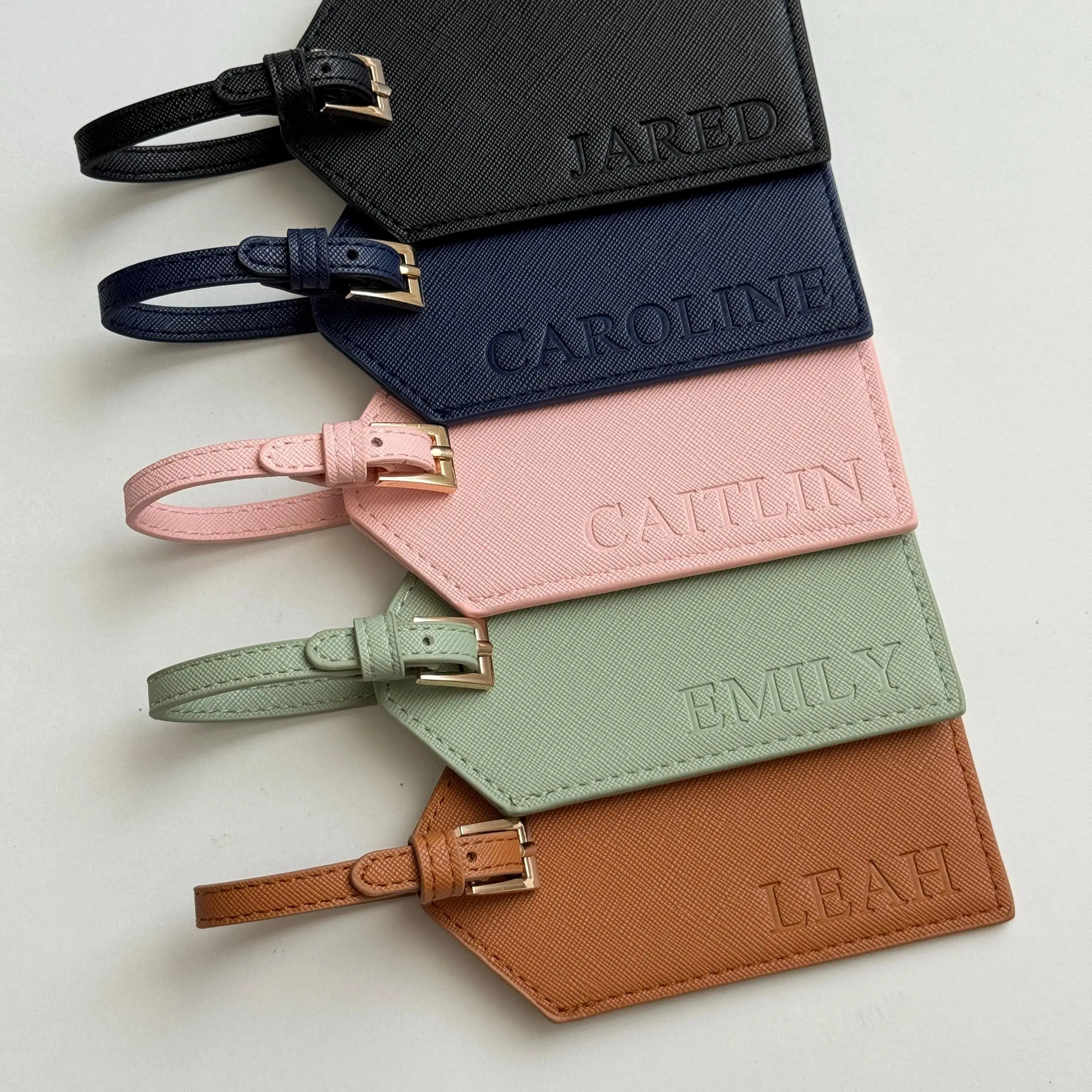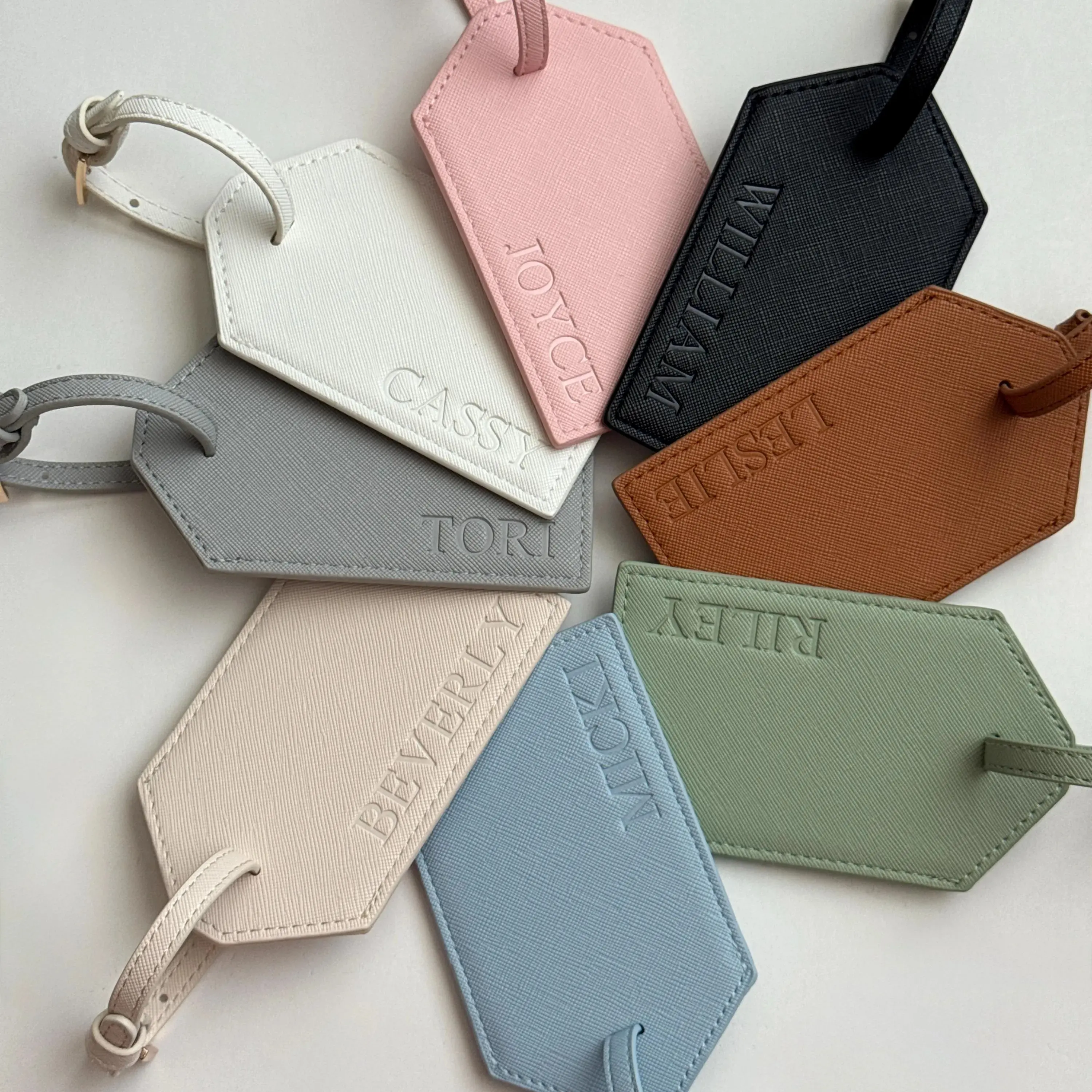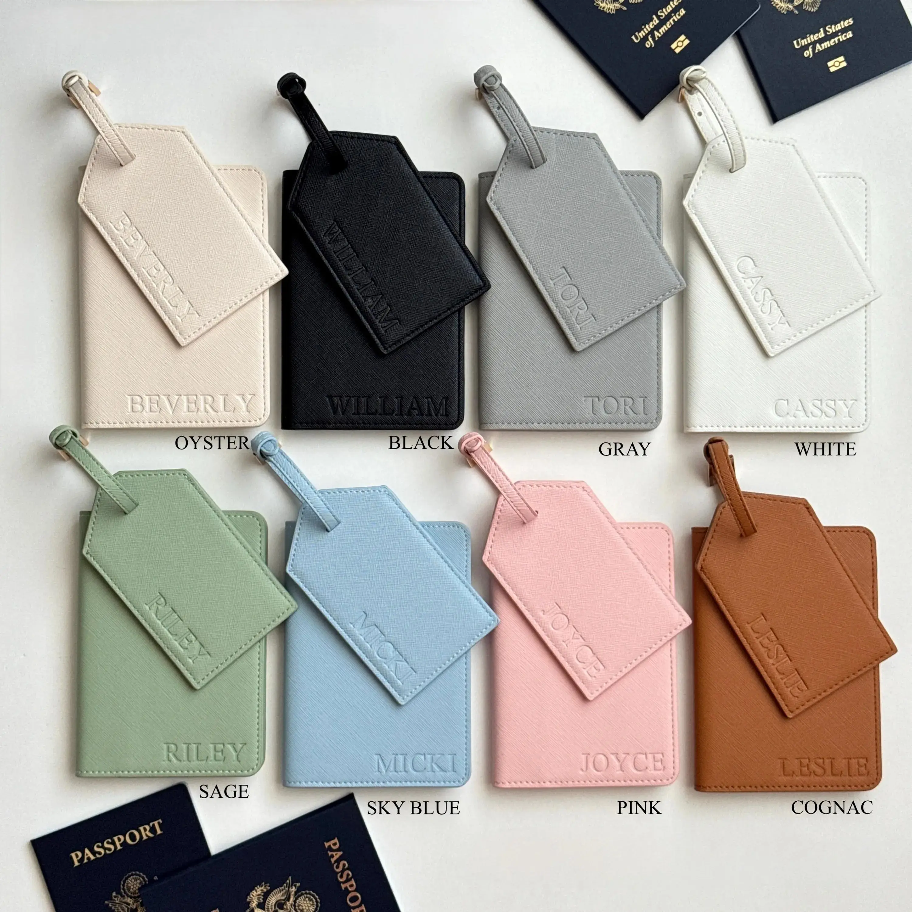 This debossed travel gift set includes a personalized passport cover and a luggage tag. Ideal for weddings or as a thoughtful favor, it's crafted from PU leather. The set is designed to add a personal touch to your travel essentials. Each item is debossed, ensuring a unique and elegant look.