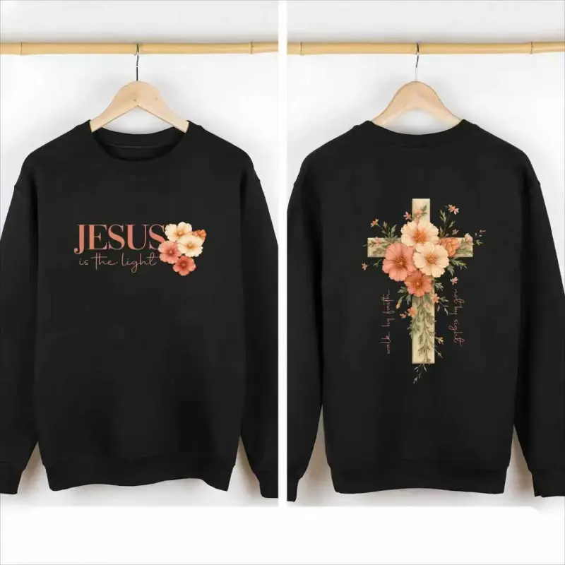 Faith Cross women's Christian shirt, featuring a beautiful floral cross print
