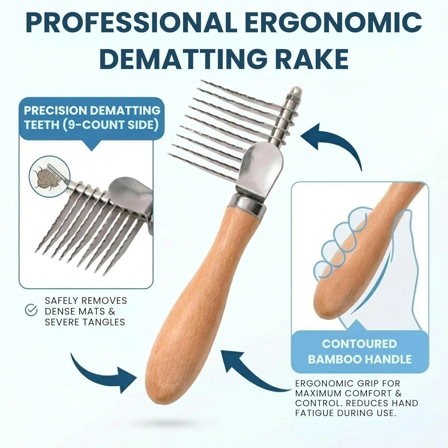 ·Non-Slip Ergonomic GripSmooth wooden handle offers a comfortable, secure hold for stress-free grooming for you and your pet.