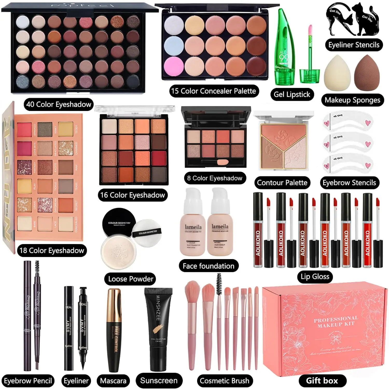 All in One Makeup Kit for Women Full Kit,Makeup Set for Women, Includes Eyeshadow Palette/Foundation/Lipstick/Eyeliner/Mascara/makeup Brush,Makeup Gift Set for Christmas & Birthday&Holiday&Everyday.