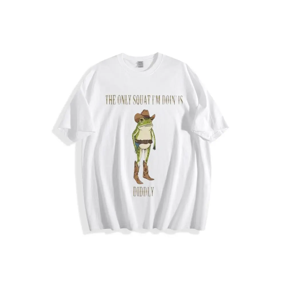 "THE ONLY SQUAT I’M DOIN’ IS DIDDLY" Frog Cowboy Hat Blue Jeans Graphic T-Shirt - Funny Whimsical Humor Cotton Tee, Casual Crew Neck for Men Women Kids, Perfect as