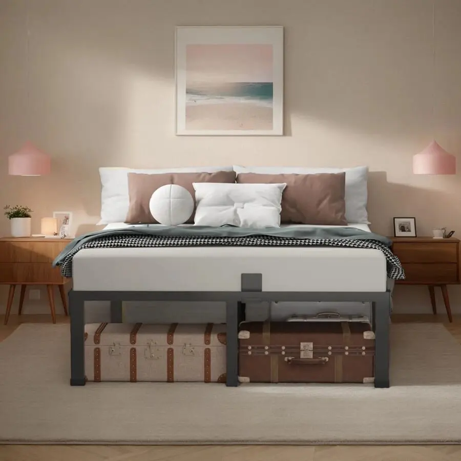 With a height of 12 inches or 14 inches, this bed frame provides substantial under-bed storage space.You can easily store clothes, suitcases, and other items under the bed, helping you keep your bedroom tidy and organized, and maximizing the use of your living space.
