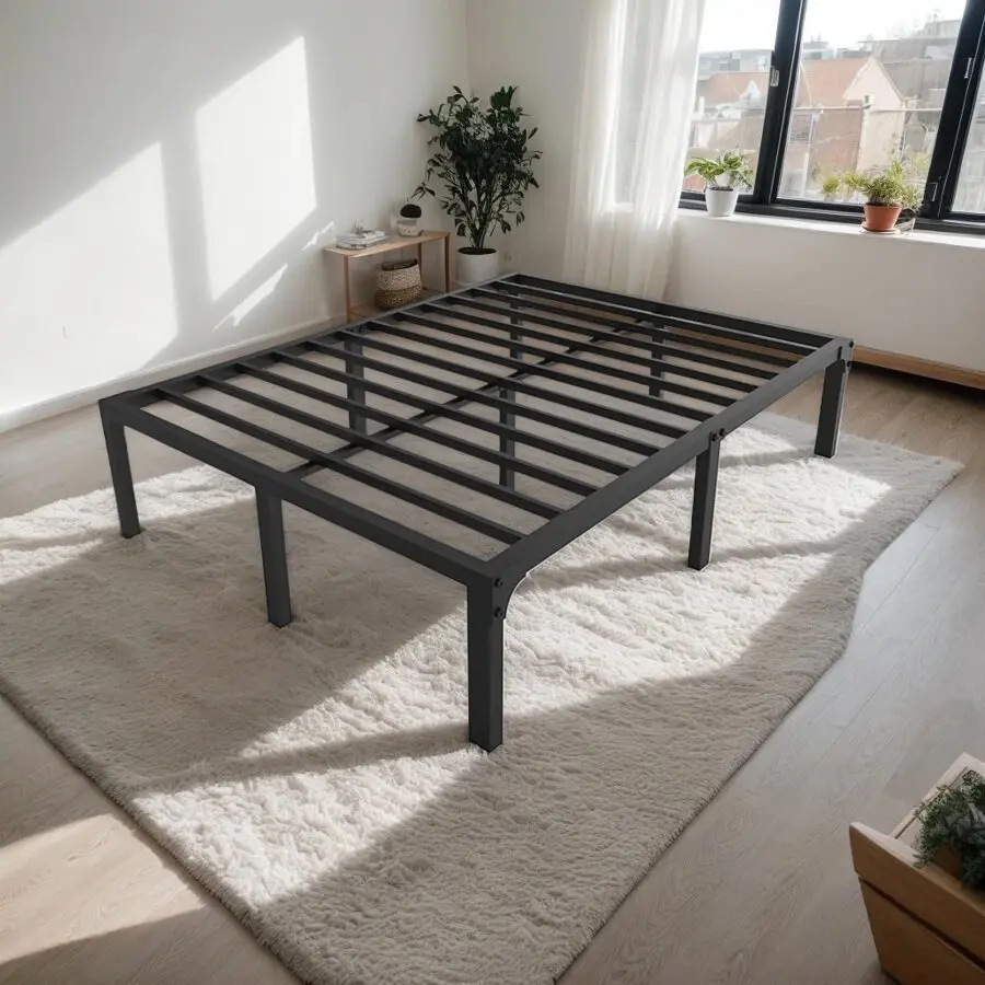 This bed frame features a sleek black metal design, crafted from high-quality iron material that ensures sturdiness and long-lasting use.It is available in two height options-12 inches and 14 inches-and four size choices: Twin, Full, Queen, and King, making it easy to find the perfect fit for your space.The simple yet elegant black appearance can seamlessly blend with any home decor style, adding a touch of modernity to your bedroom.