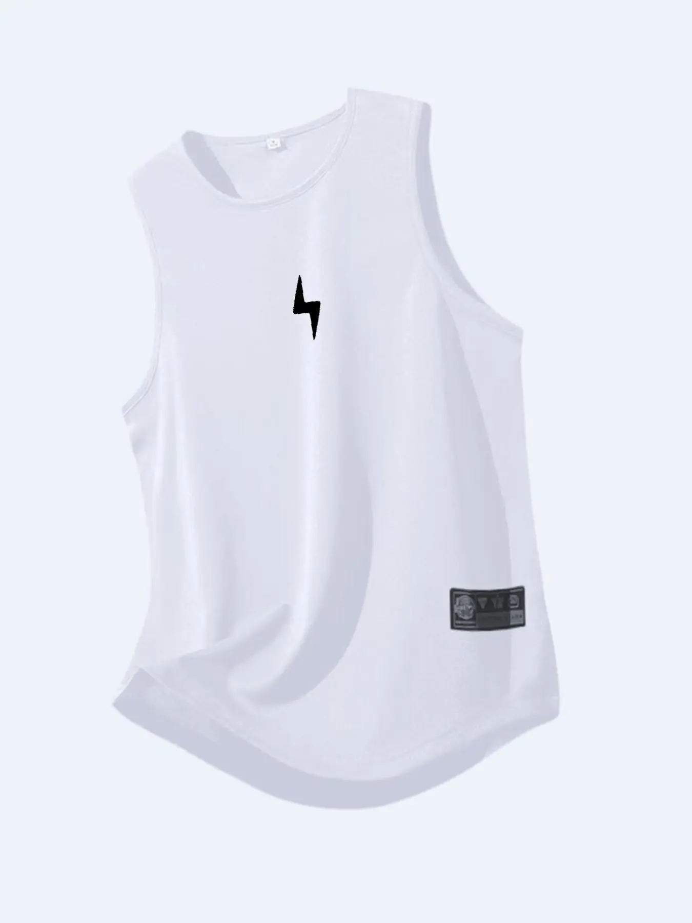 Men's Breathable Polyester Geometric Lightning Pattern Sports Tank Top, Casual Sleeveless Shirt for Gym, Running, Outdoor, Summer Wear