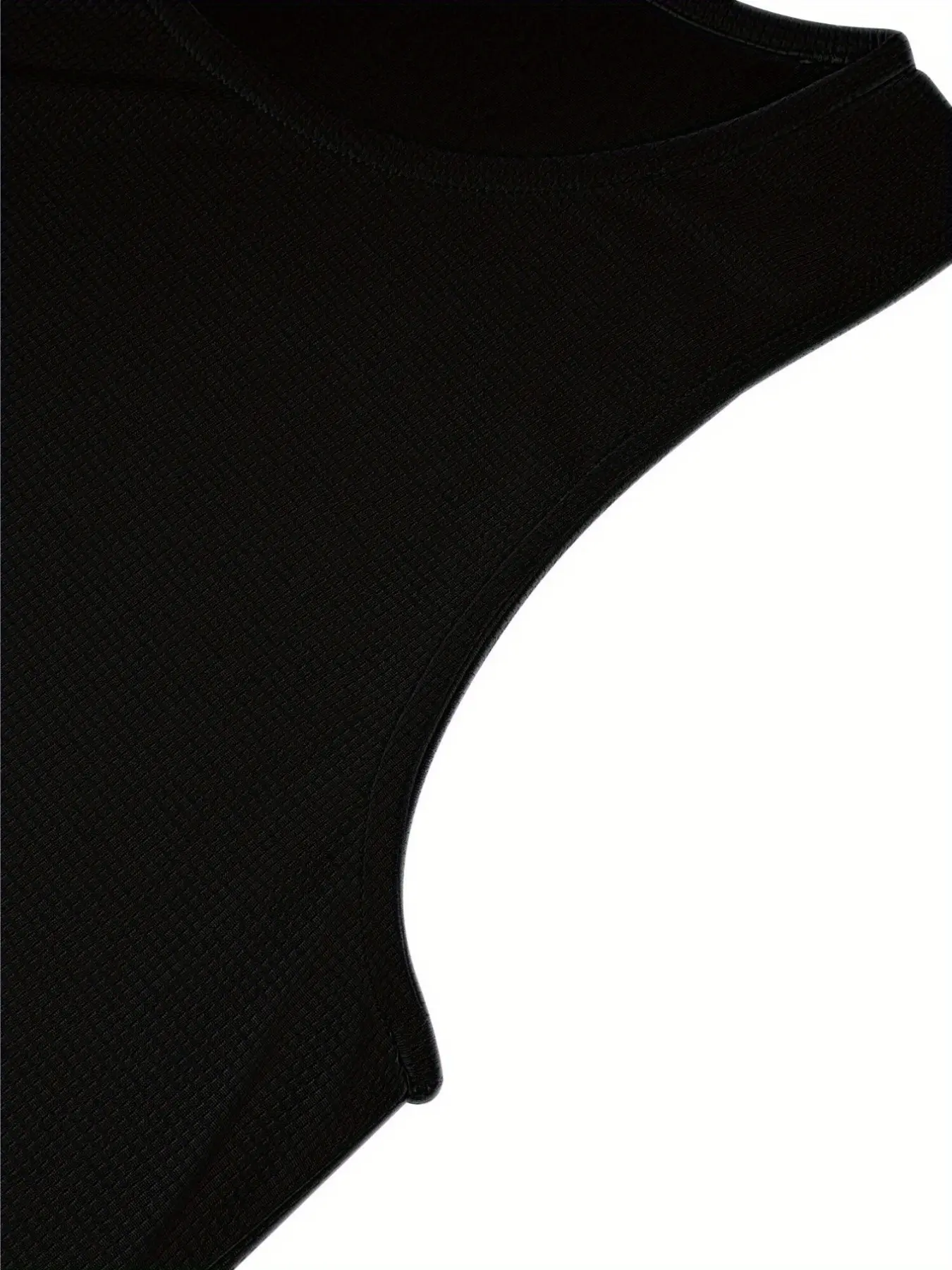 3pcs Men's Casual Tank Tops, Breathable Polyester Round Neck, Summer Outdoor Activities, Dark Style Fitness Set
