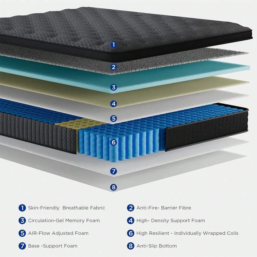 • 8", 10", 12" and 14" thickness options for personalized comfort.