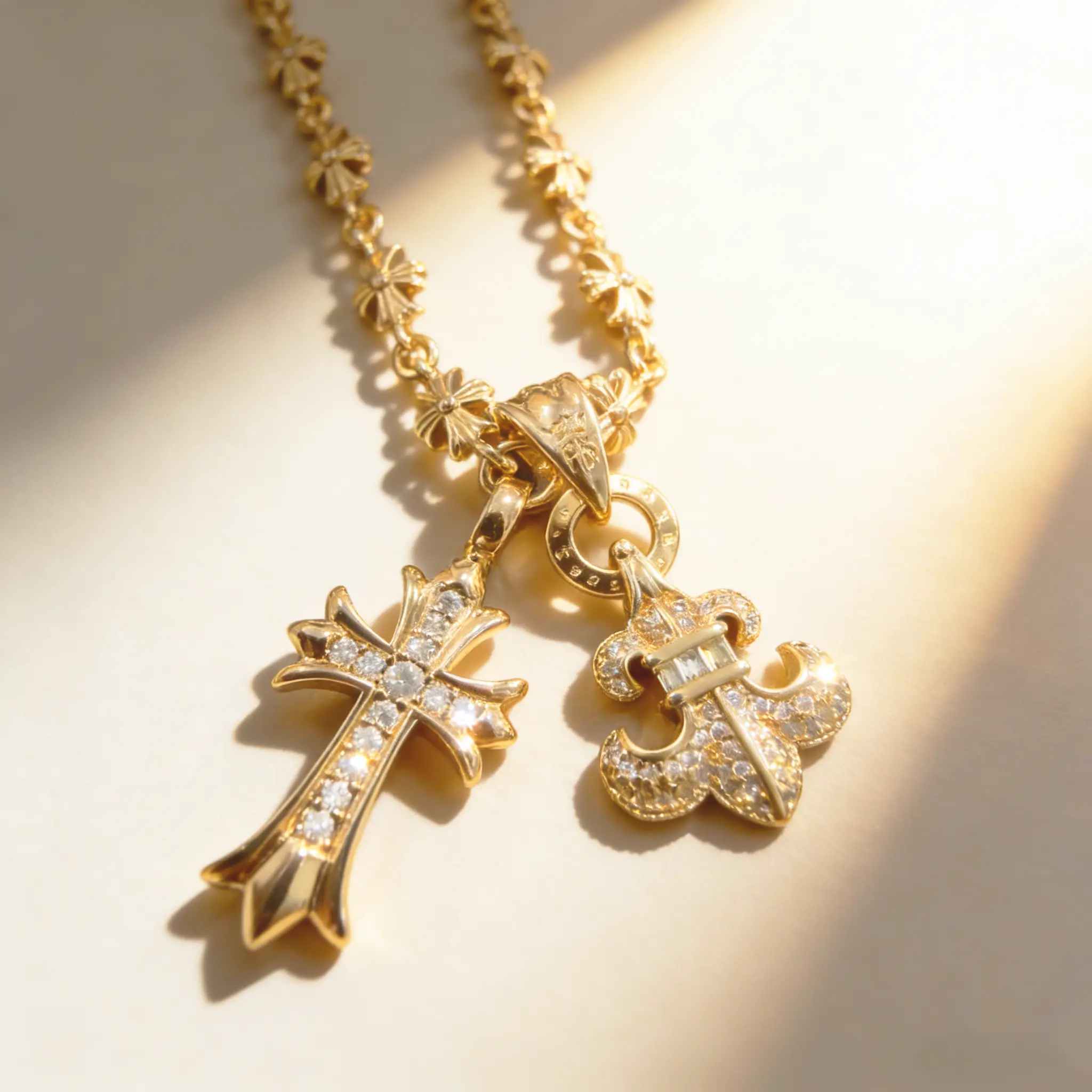 ✨ Specifications: The necklace is 18 inches long, with a diamond-encrusted cross pendant. It is made from hypoallergenic stainless steel, ensuring durability and comfort. A perfect blend of fashion and functionality.