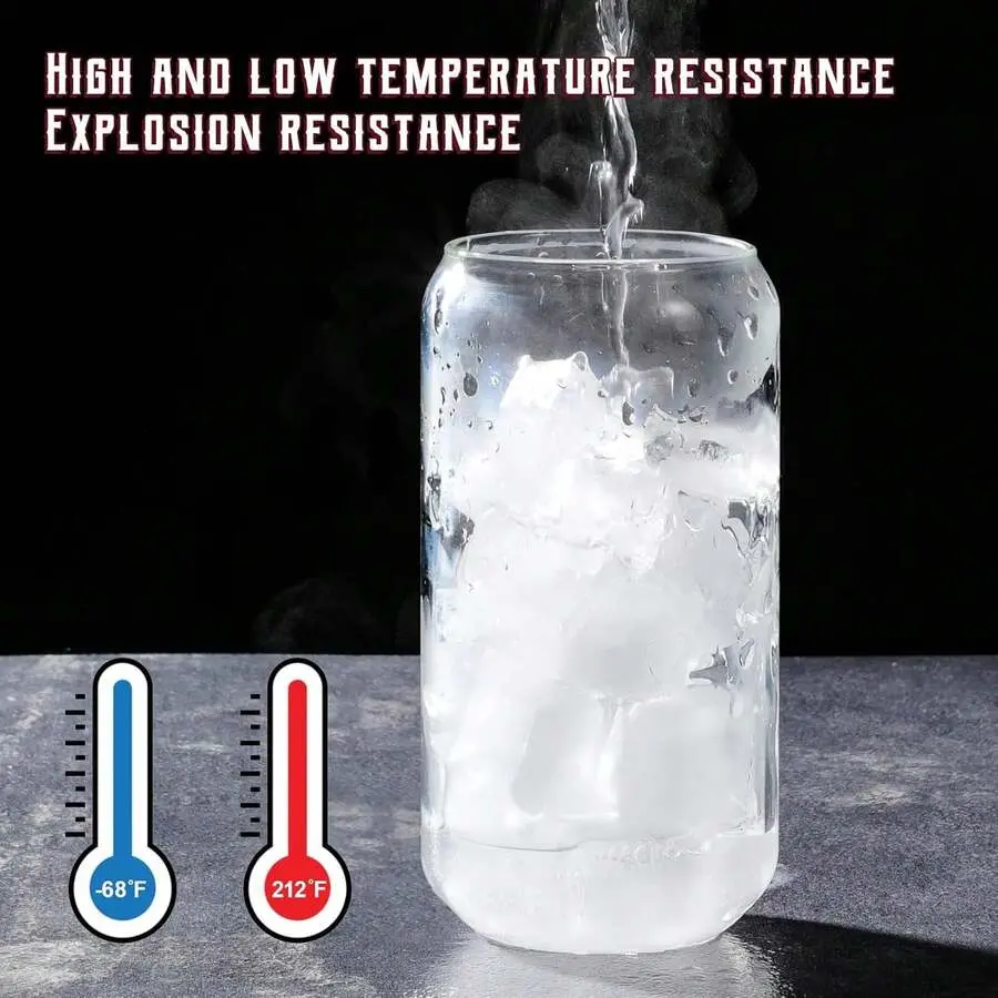 Versatile and stylish: These cups aren't just for drinks. They can also serve as stylish storage containers for snacks, desserts, or even as unique flower vases. The modelling of the glass is imitation of beer cans, add a touch of elegance to any drink. Enjoy your beverages in style with these high-quality glass tumblers.
