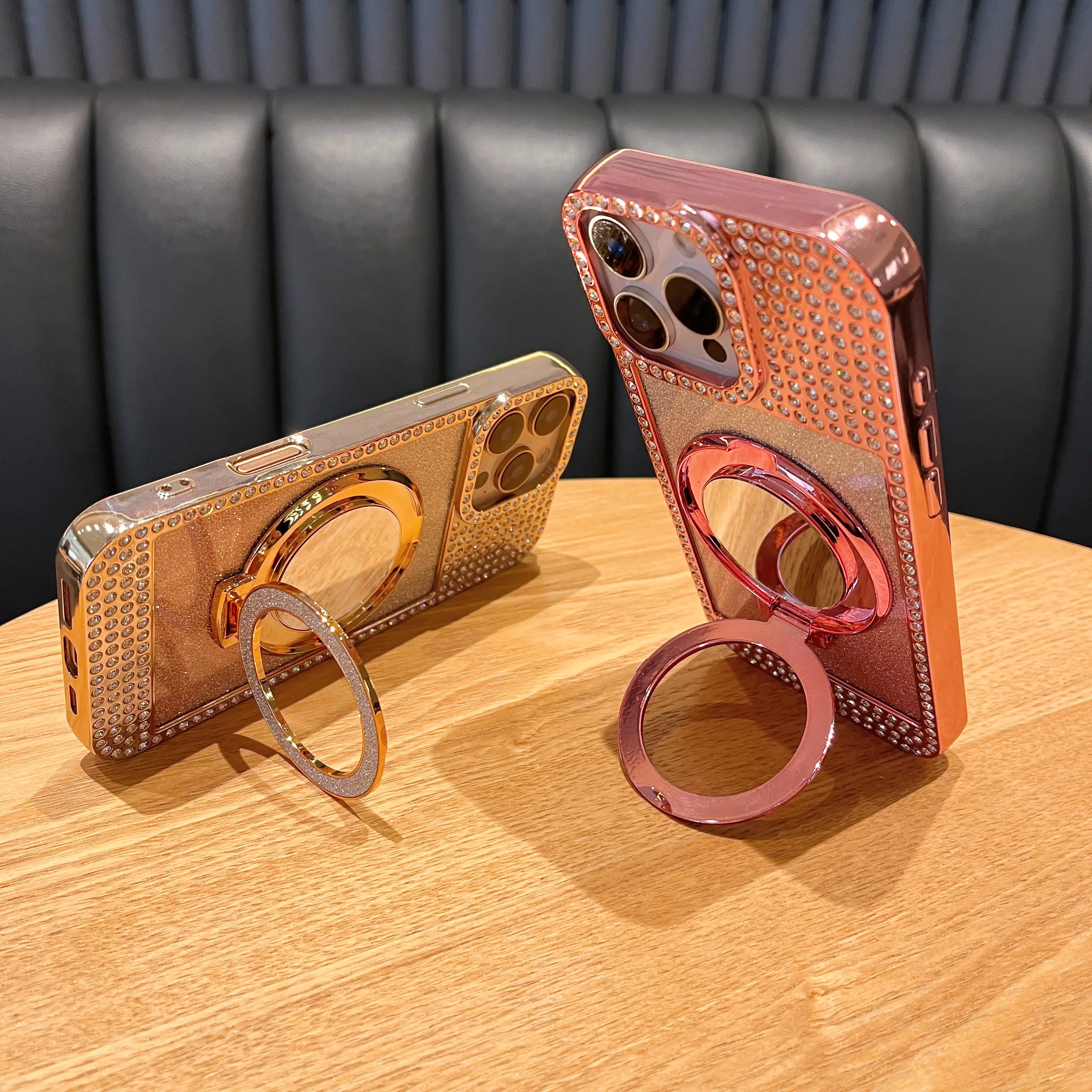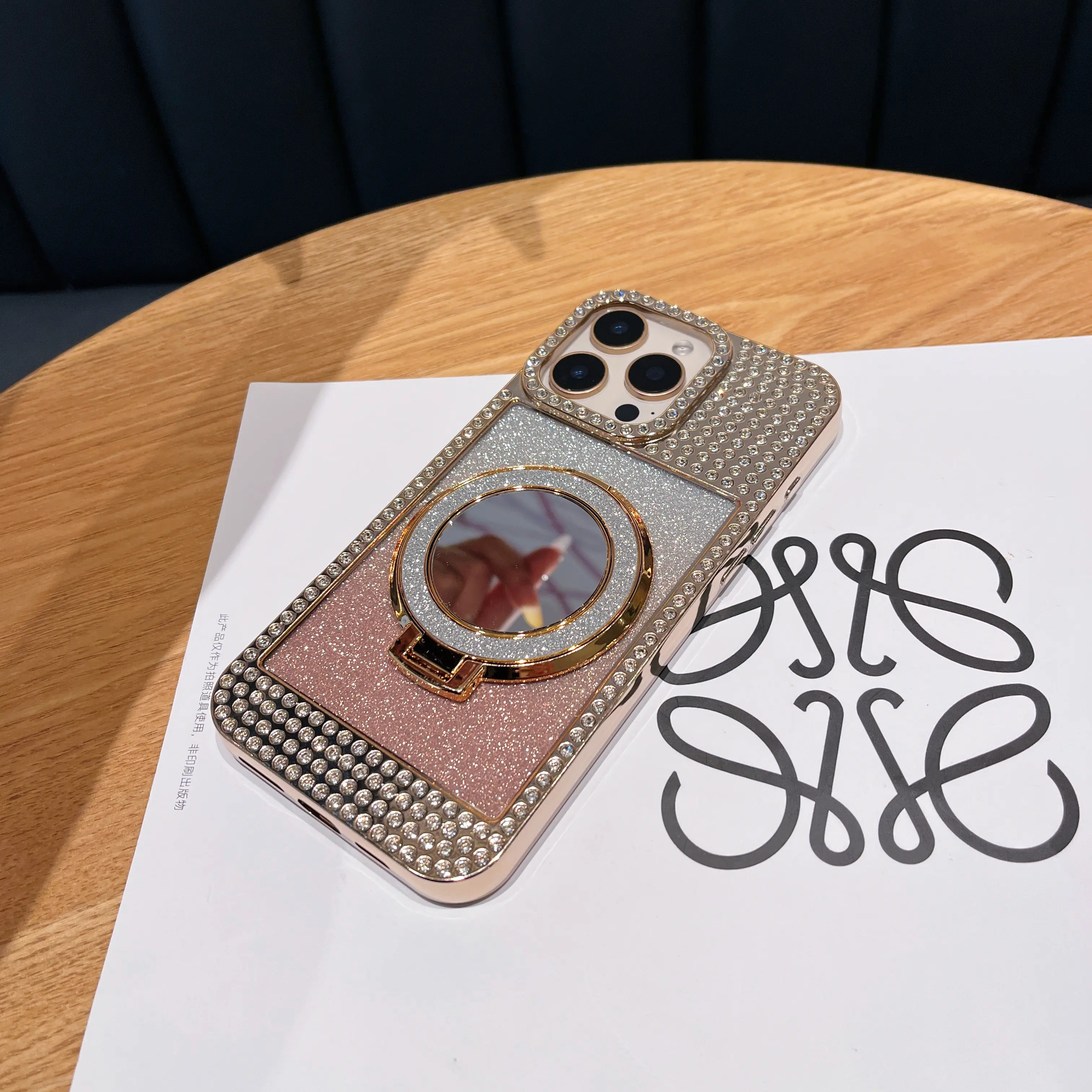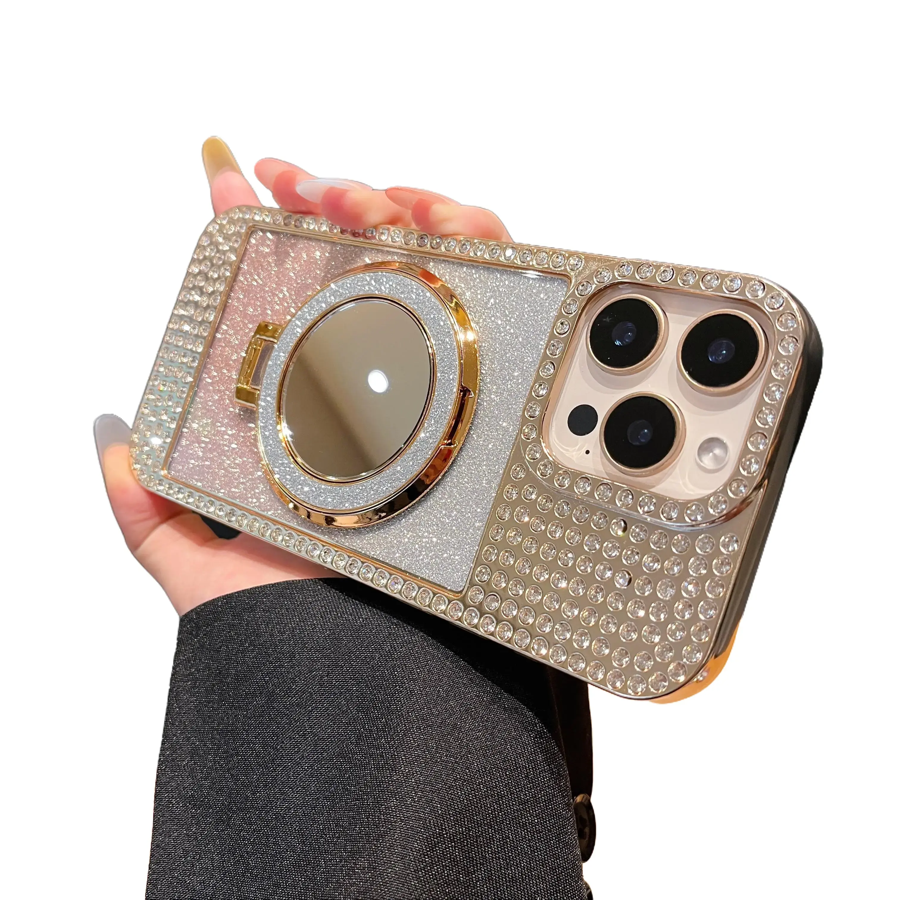 ·Full rhinestone encrusted frame + camera bezel + gradient glitter back panel, finished with premium gold electroplating