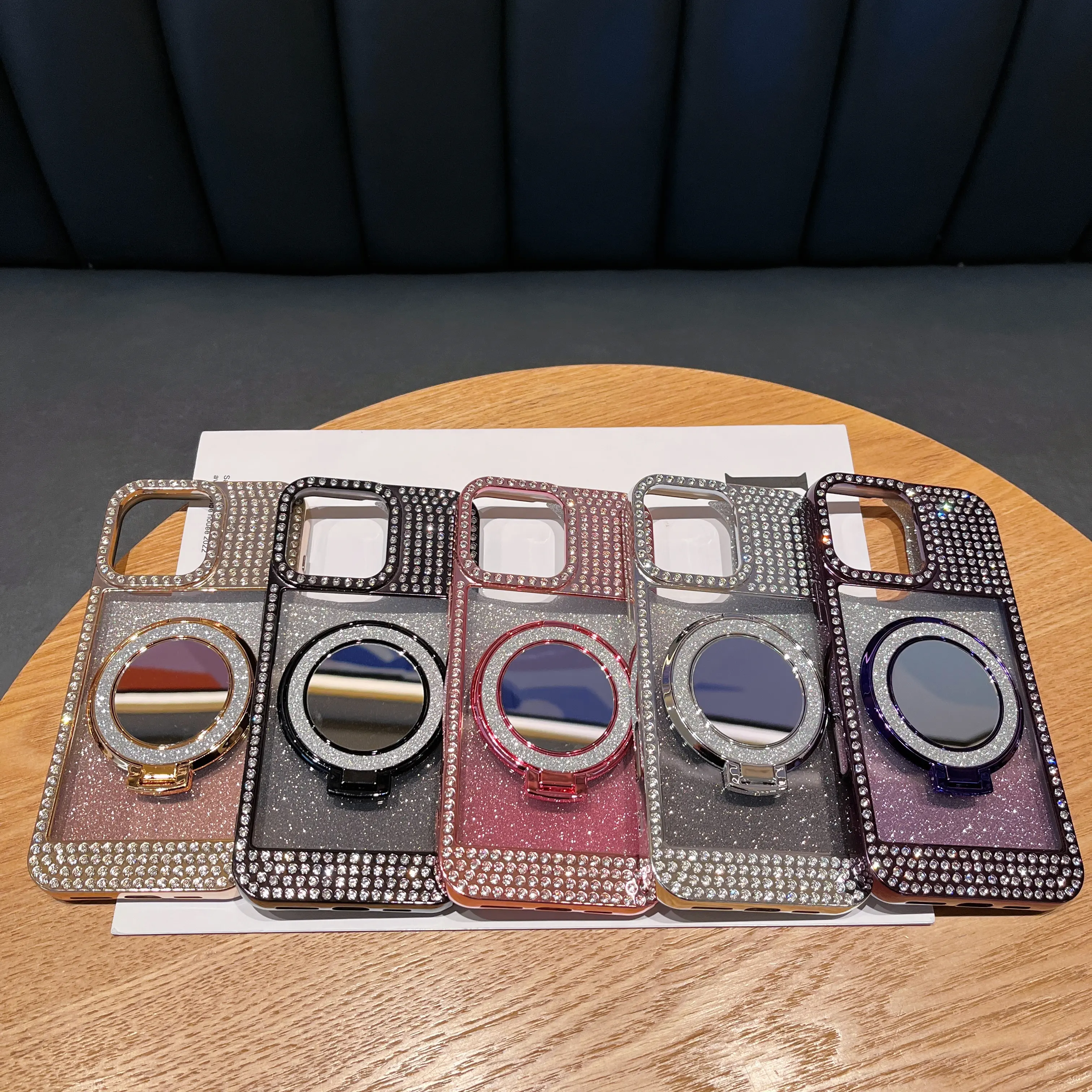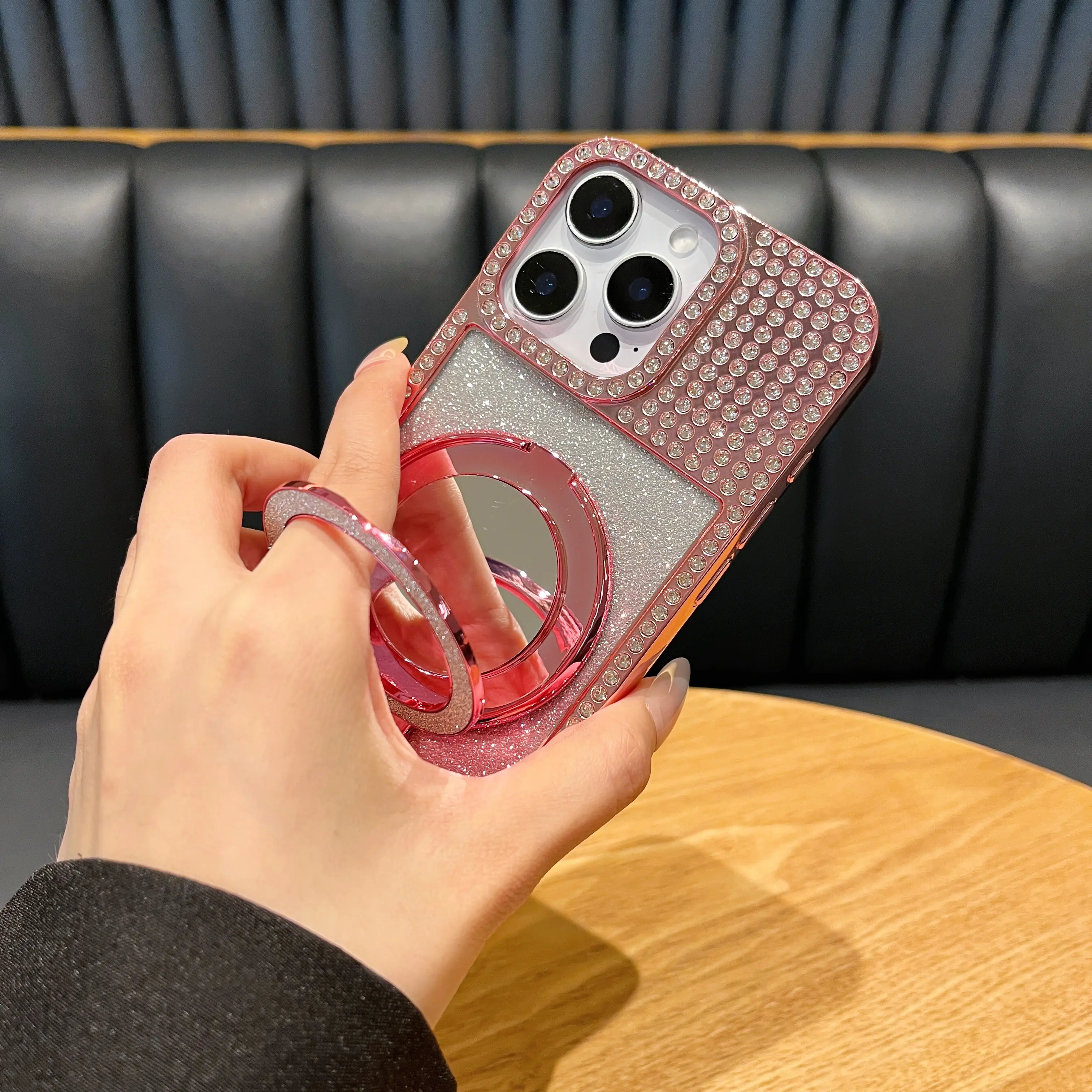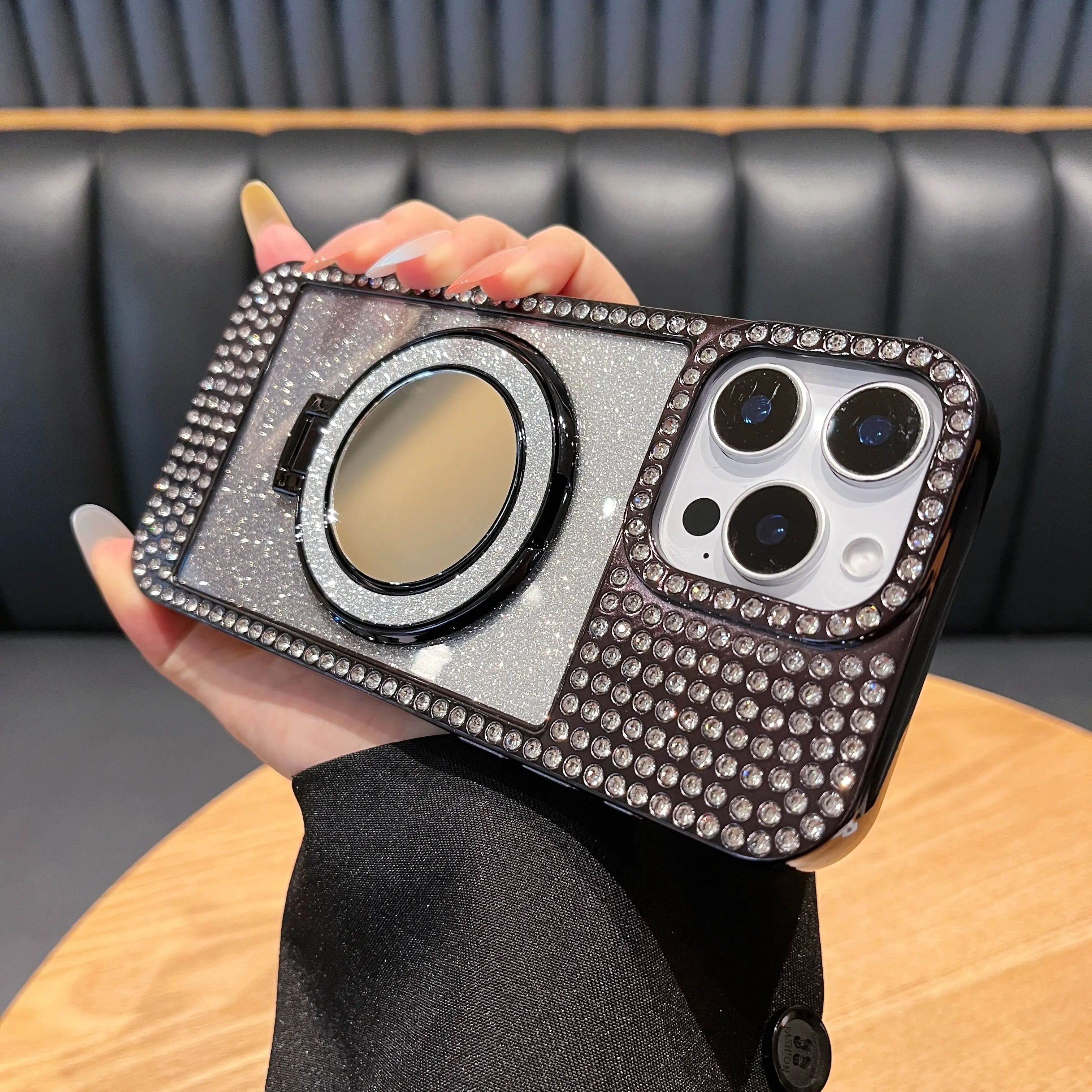 ·Full rhinestone encrusted frame + camera bezel + gradient glitter back panel, finished with premium gold electroplating