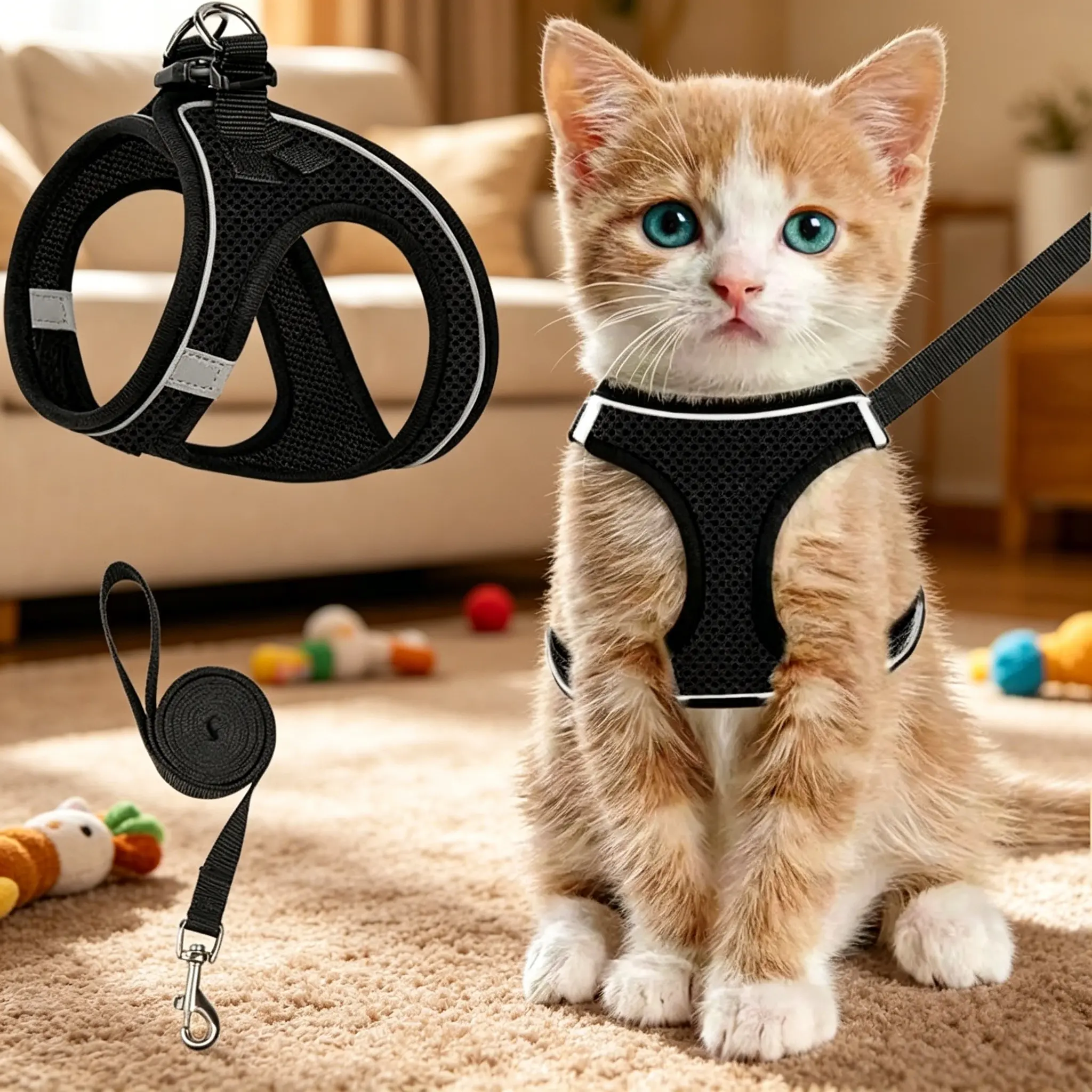 Perfect for everyday walks, this harness and leash set ensures your cat stays safe and comfortable. The set is ideal for routine walks.