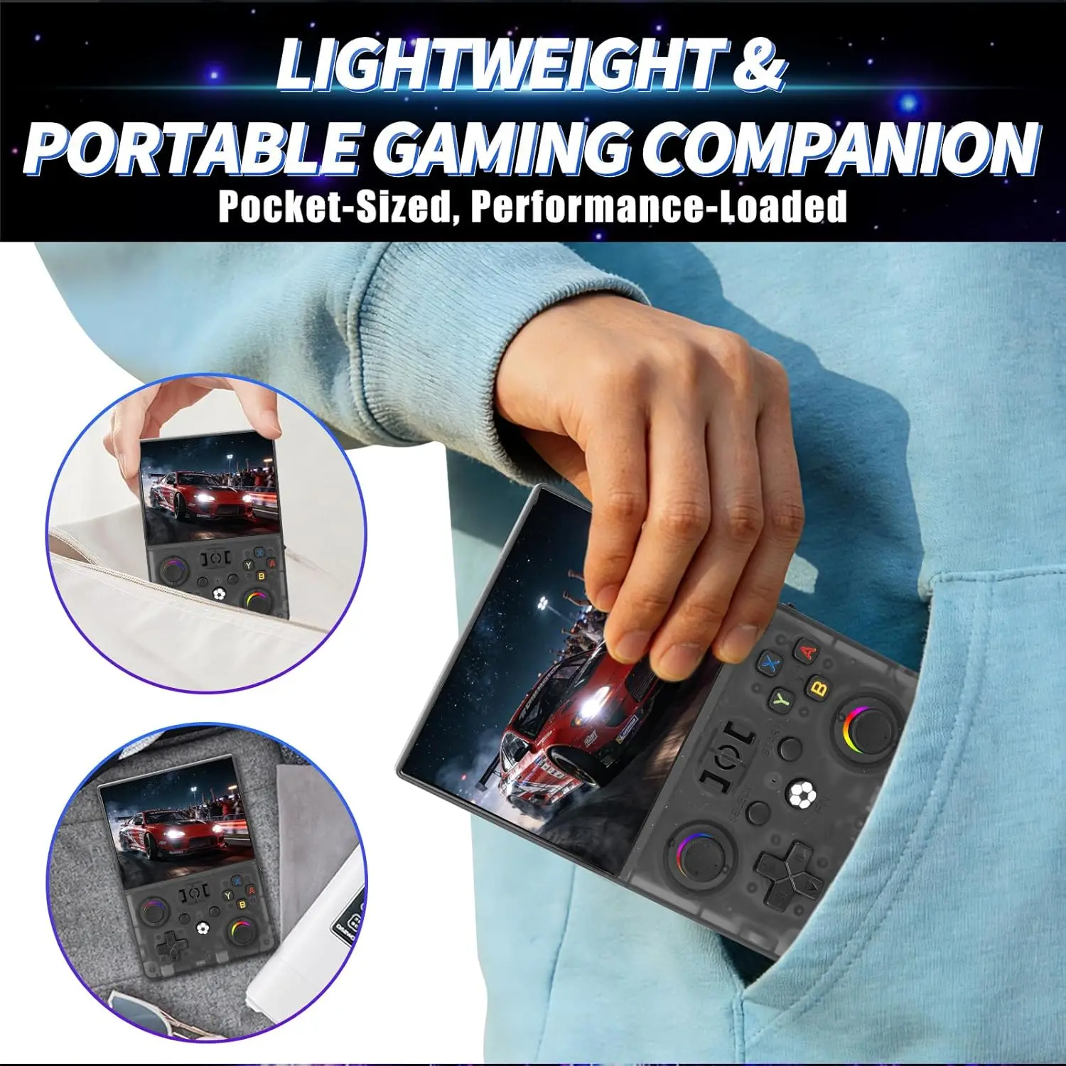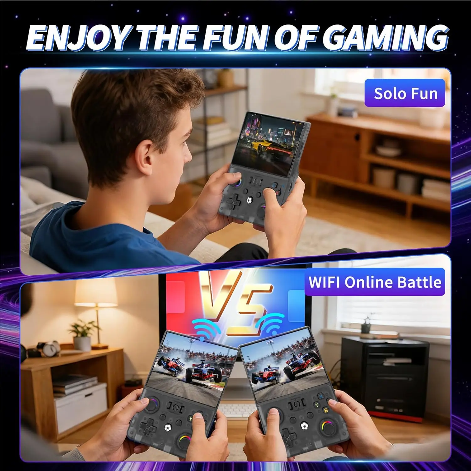 ·Pocket-Ready, Game-Ready:The R36MAX Ⅱ retro handheld game console compresses the classic memories into compact and portable segments. It is lightweight and compact, and can be easily tucked into a pocket or backpack. It is also equipped with a 4000 mAh battery, which can provide long-lasting power and allow you to play to your heart's content. When you are traveling, waiting in line or taking a break, you can take it out at any time to play, allowing the classic to be brought back and allowing nostalgia to flow unrestrictedly