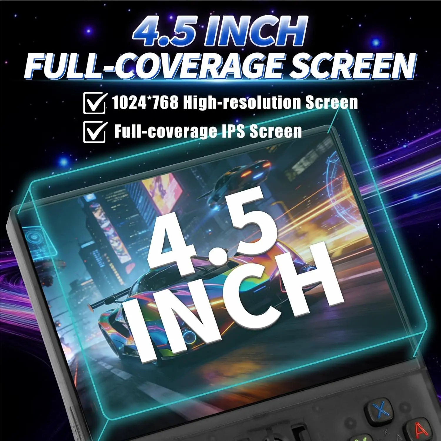 ·4.5-inch High-definition Screen:The R36MAX Ⅱ retro handheld game console, is equipped with a 4.5-inch IPS OCA fully adhered high-definition MIPI screen with a resolution of 1024*768. It can perfectly display every pixel of the old games. The clear visual effect and vivid colors will bring your favorite classic games back to your childhood. Whether you are reliving old memories or experiencing these classic games for the first time, this retro handheld game console will surely bring you surprises
