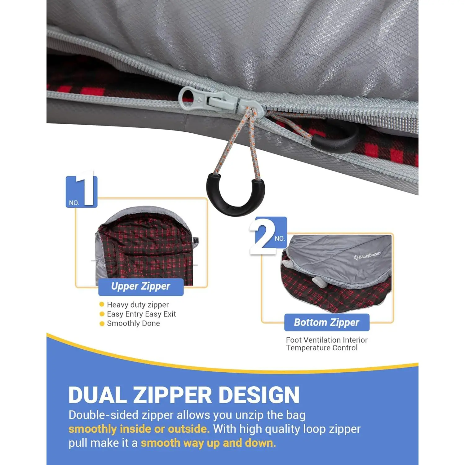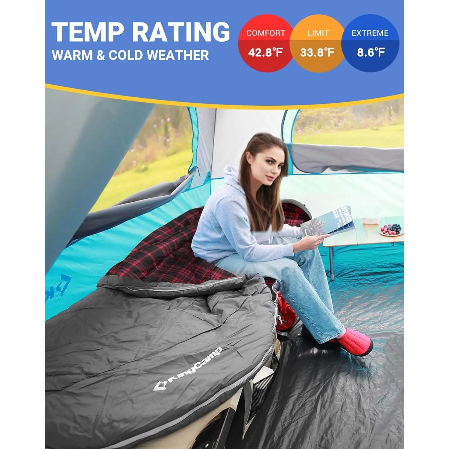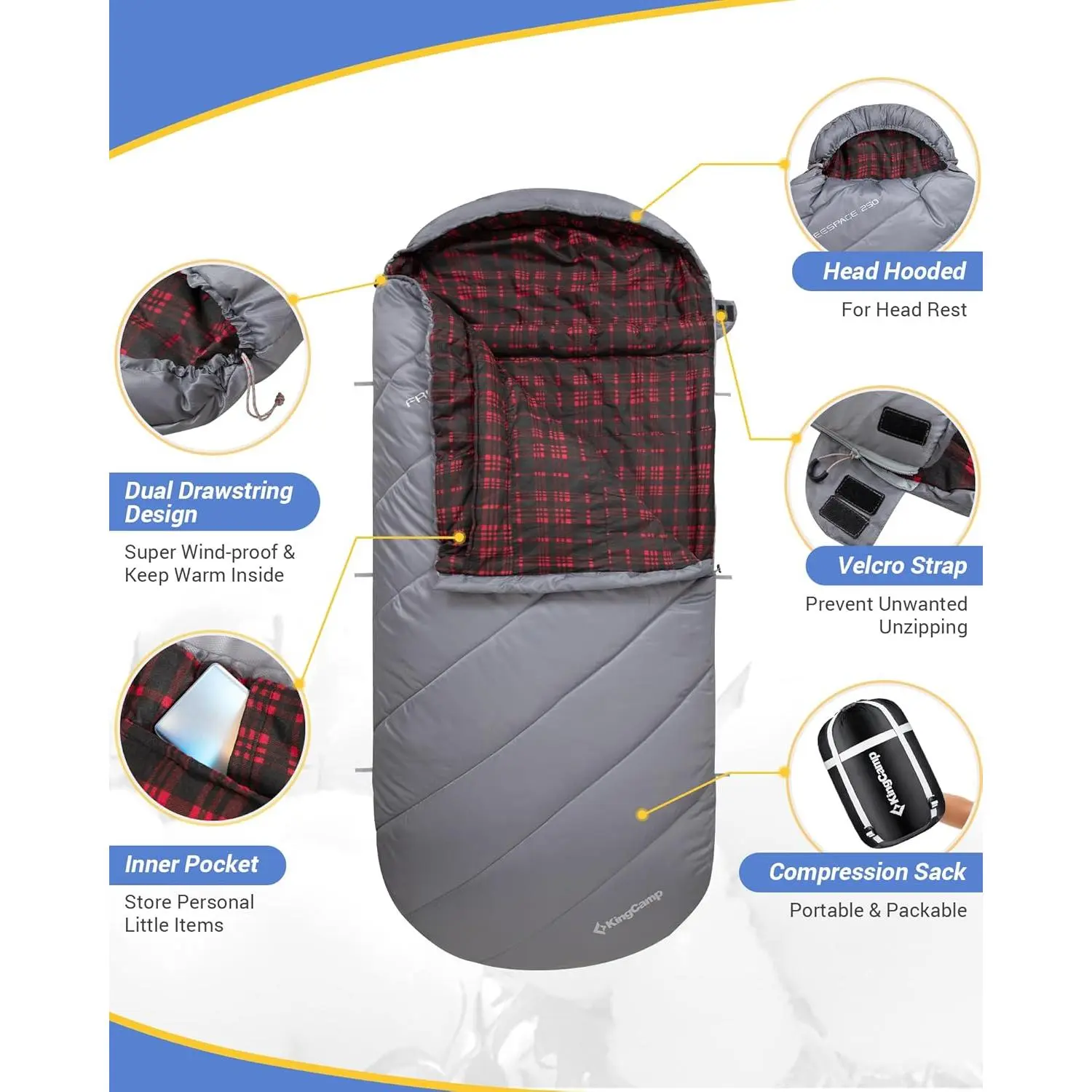 KingCamp Sleeping Bag for Adults, Cold Weather & Warm Extra Wide Big & Tall XL Portable Waterproof Flannel Sleeping Bags, Essentials Gear Accessories for Camping Backpacking Hiking Indoor & Outdoor